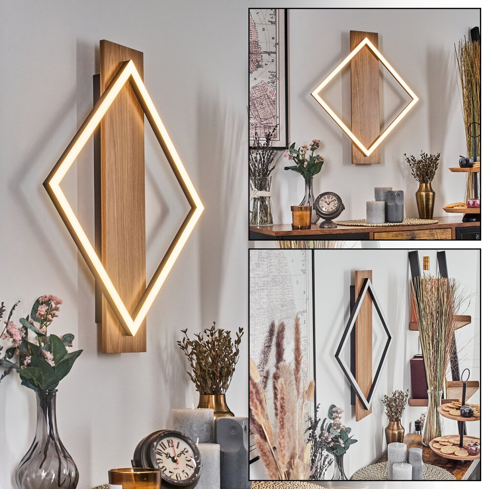 Cabanas Wandlamp LED houtlook, Zwart, 1-licht