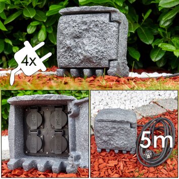 Tinú Buitencontactdoos Zwart, stenen uiterlijk