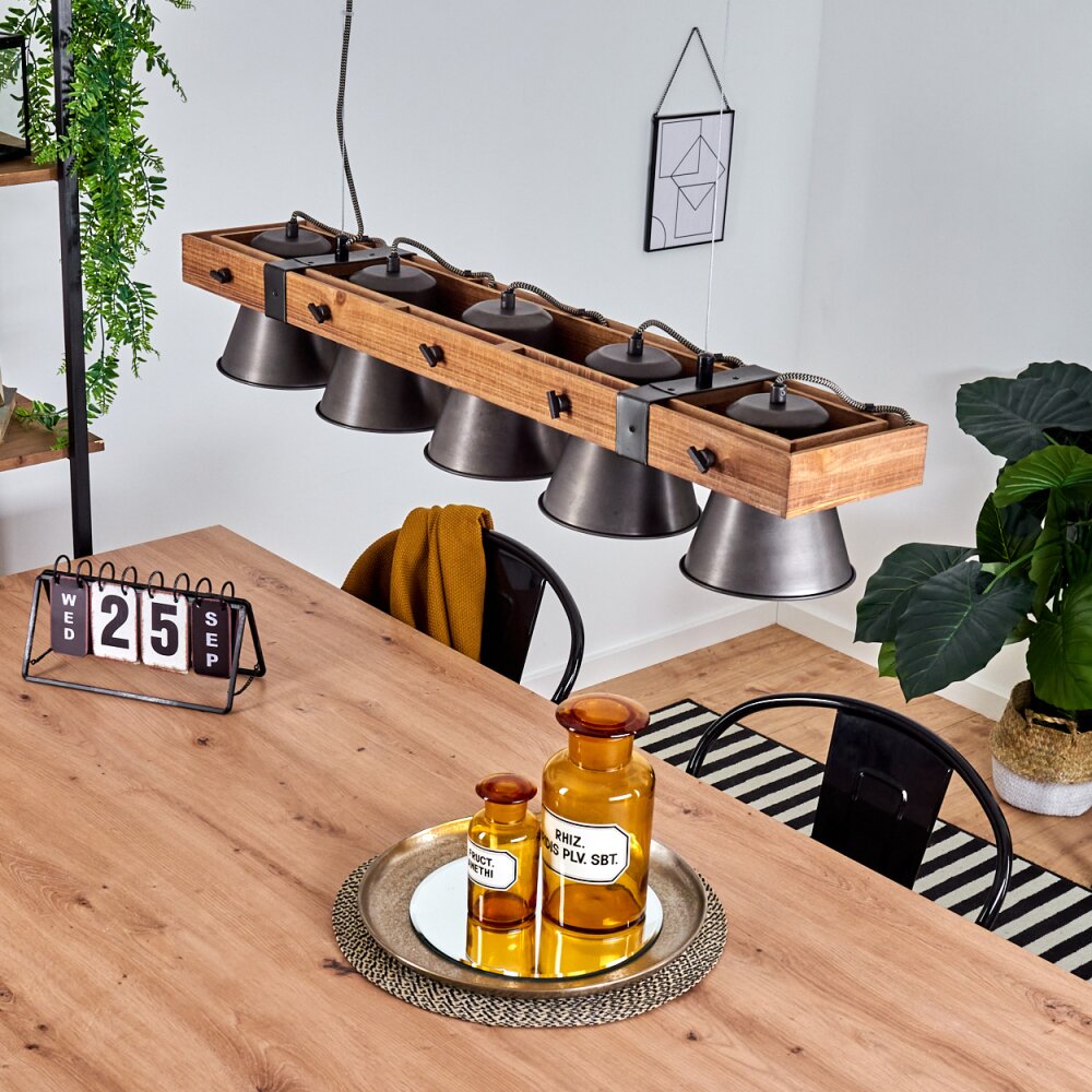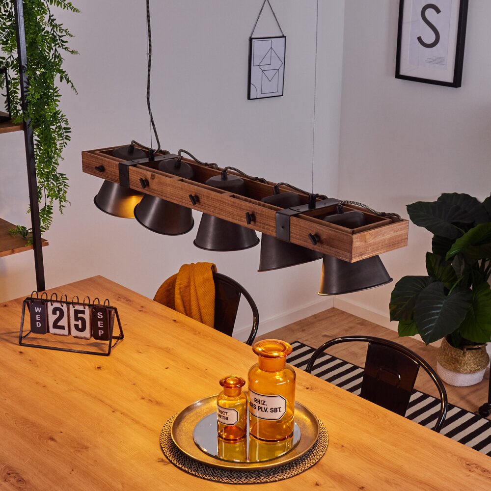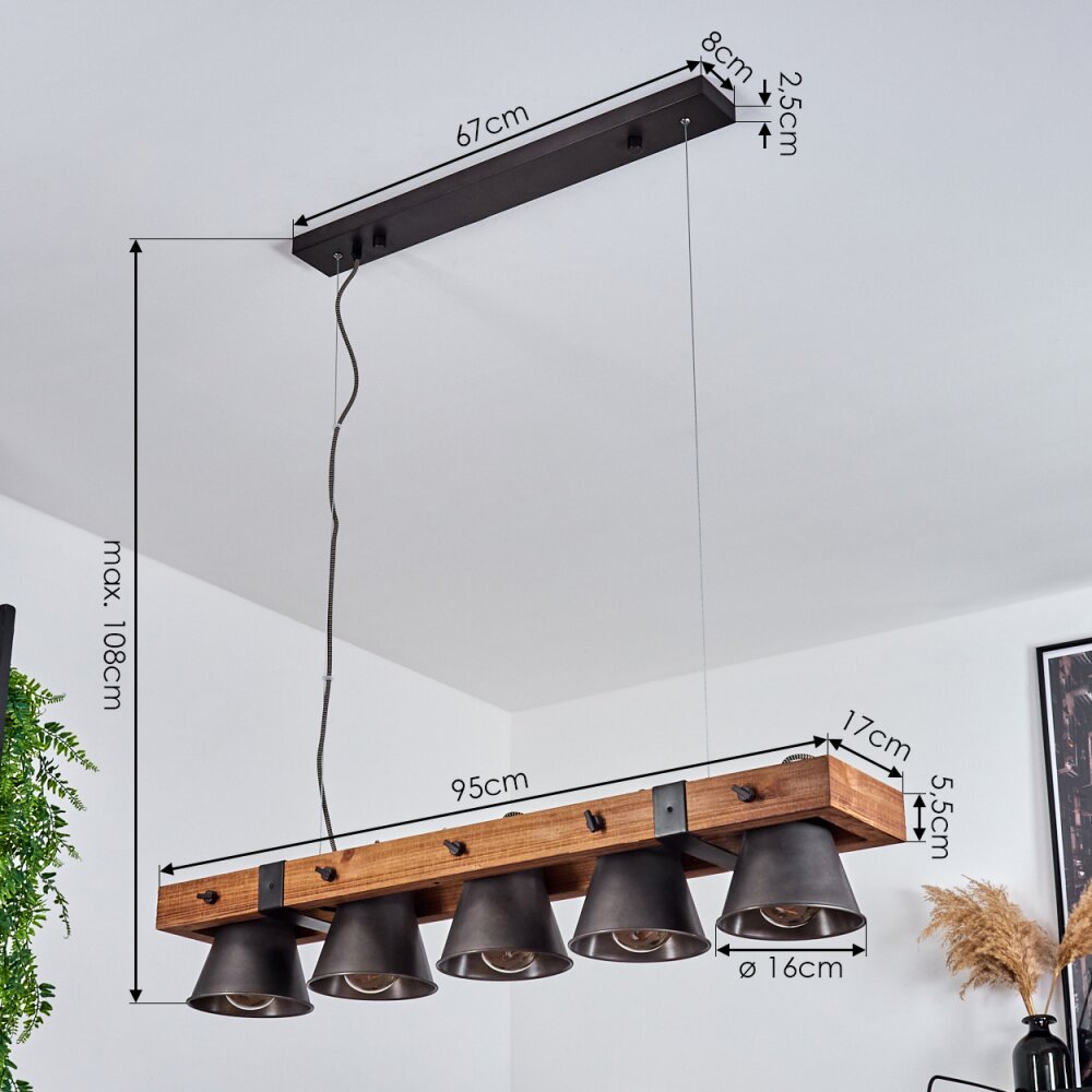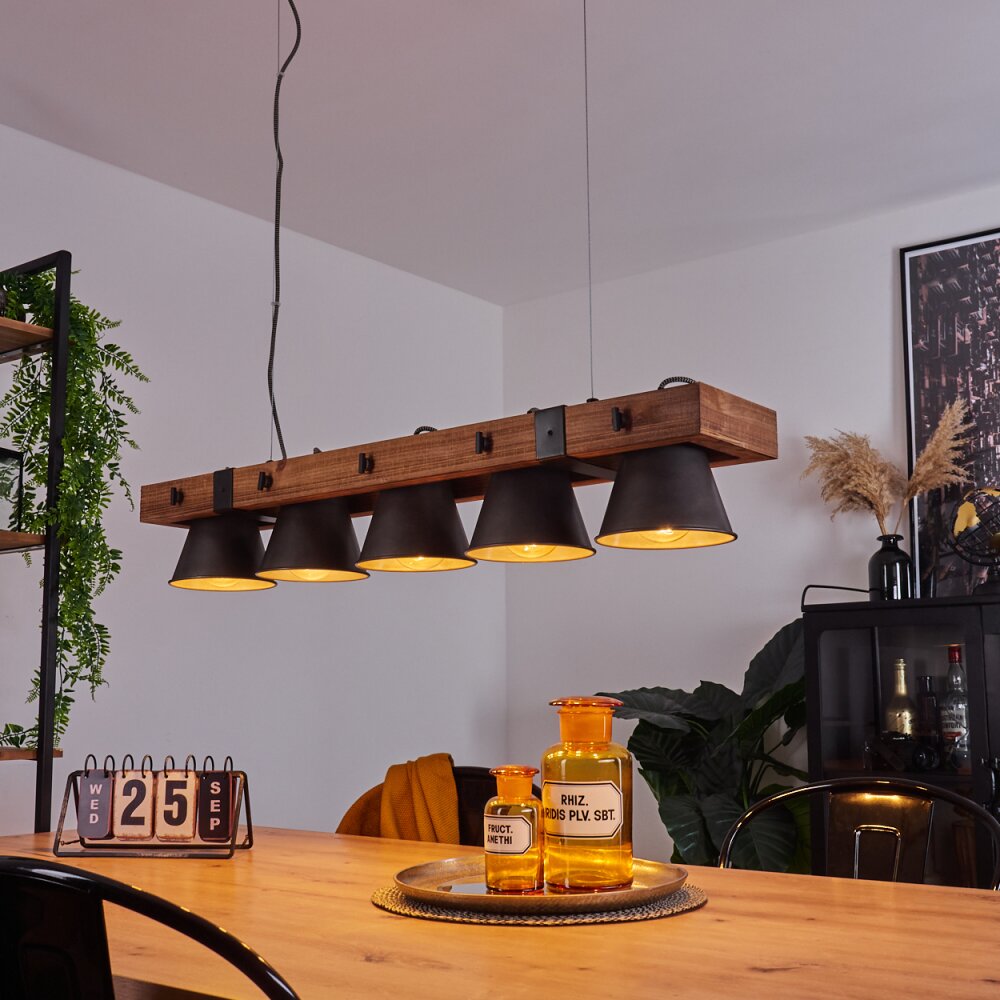 Aduard Hanglamp Hout donker, Zwart, 5-lichts