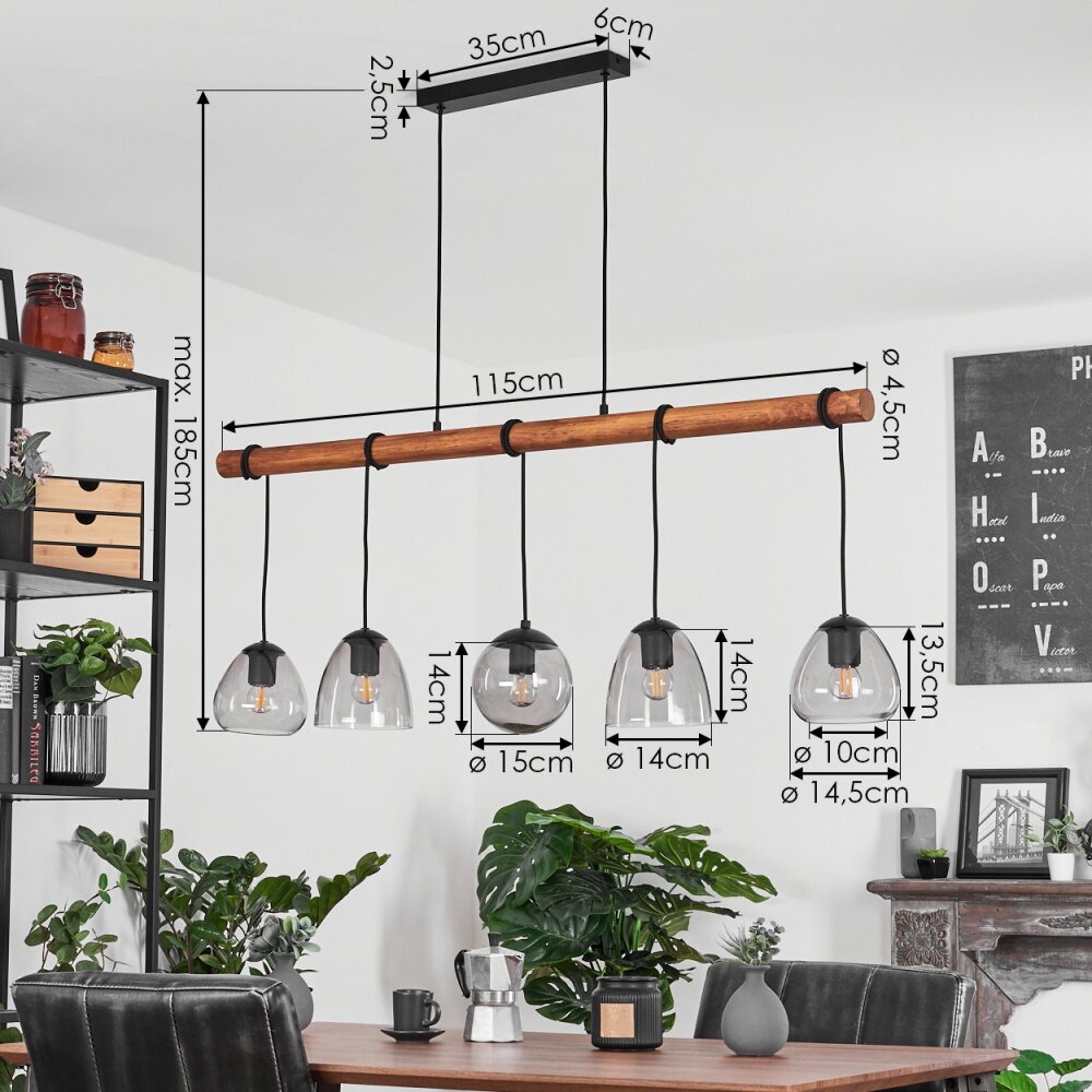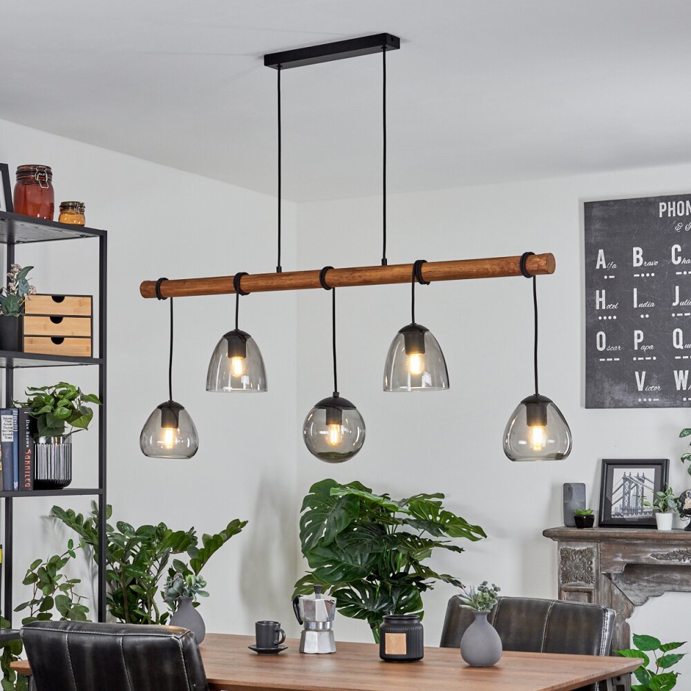 Roxa Hanglamp Hout licht, Zwart, 4-lichts
