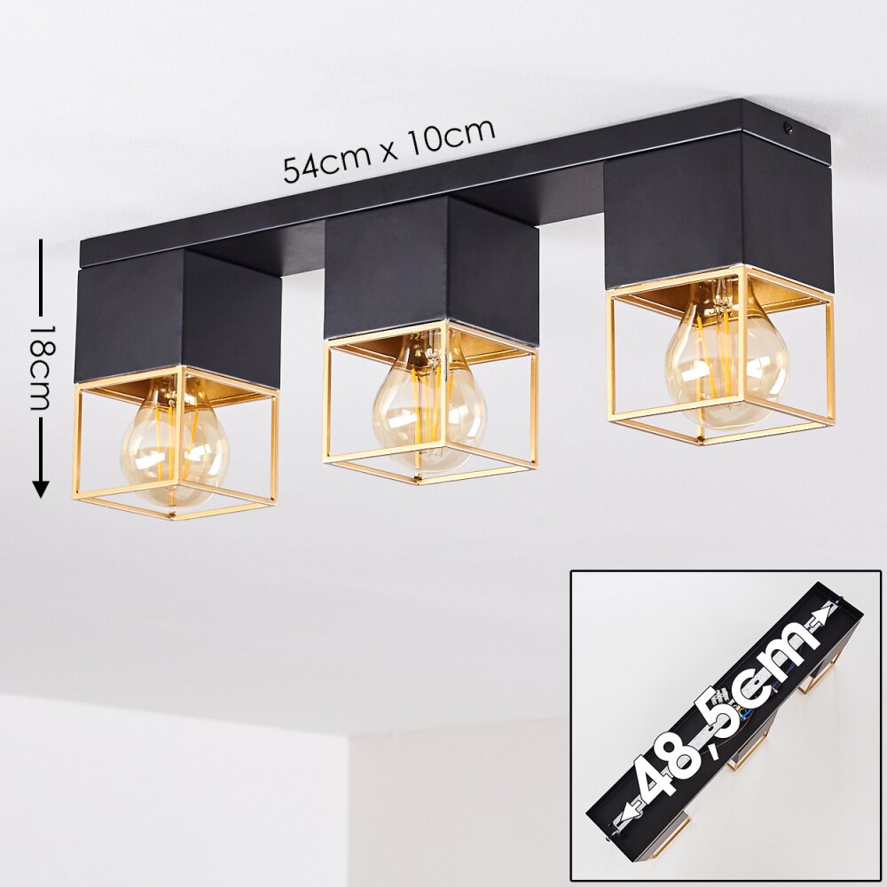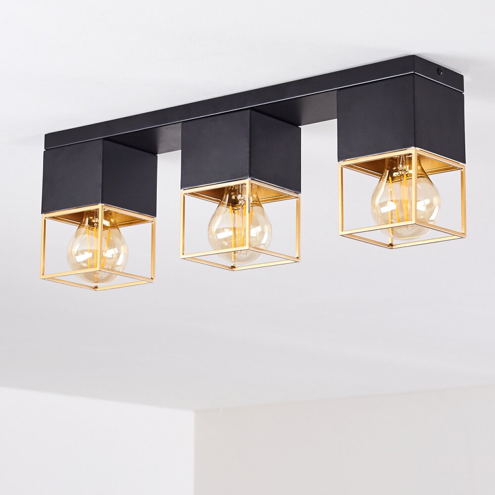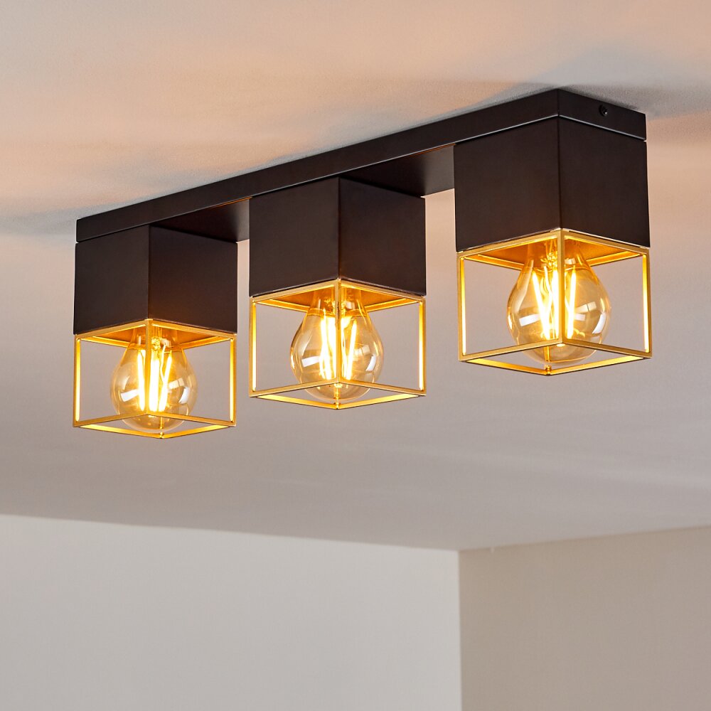 Agawam Plafondlamp Goud, Messing, Zwart, 3-lichts