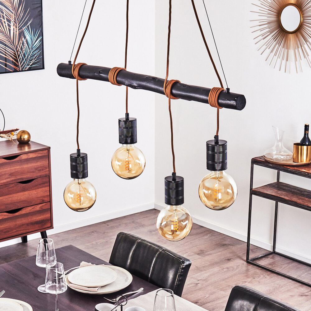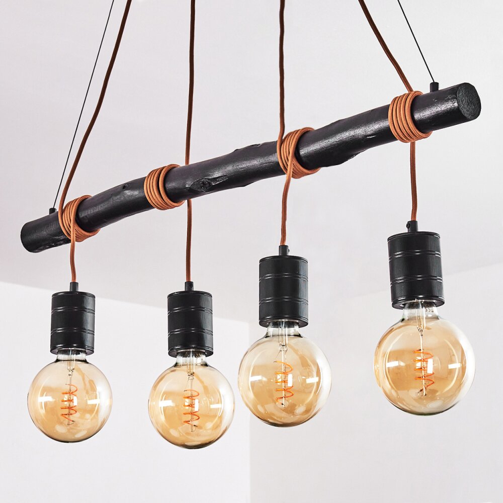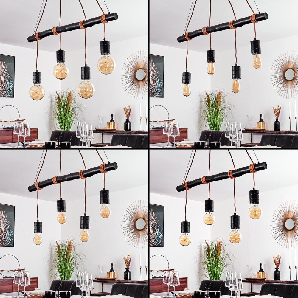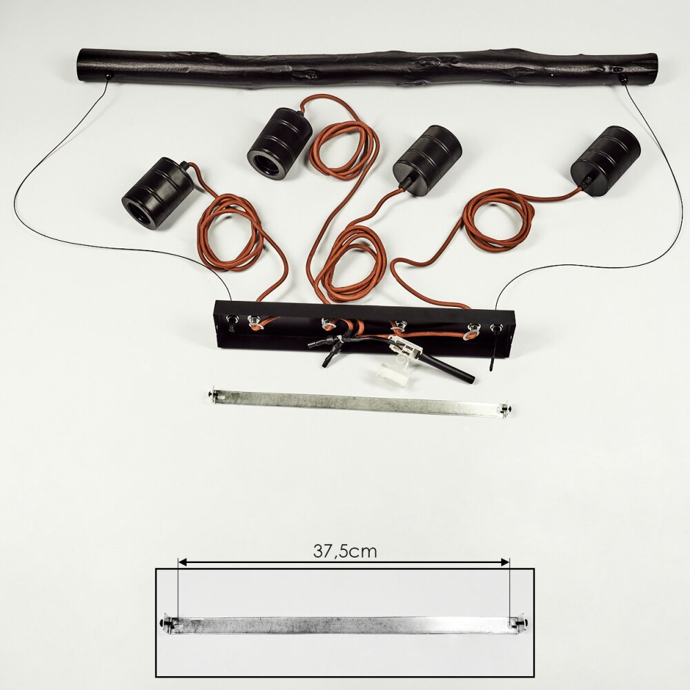 Ajaccio Hanglamp Hout donker, Zwart, 4-lichts