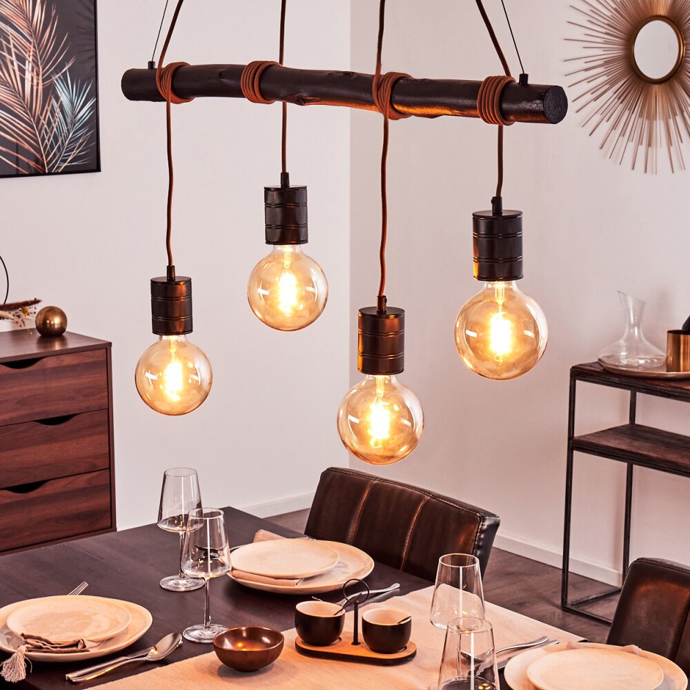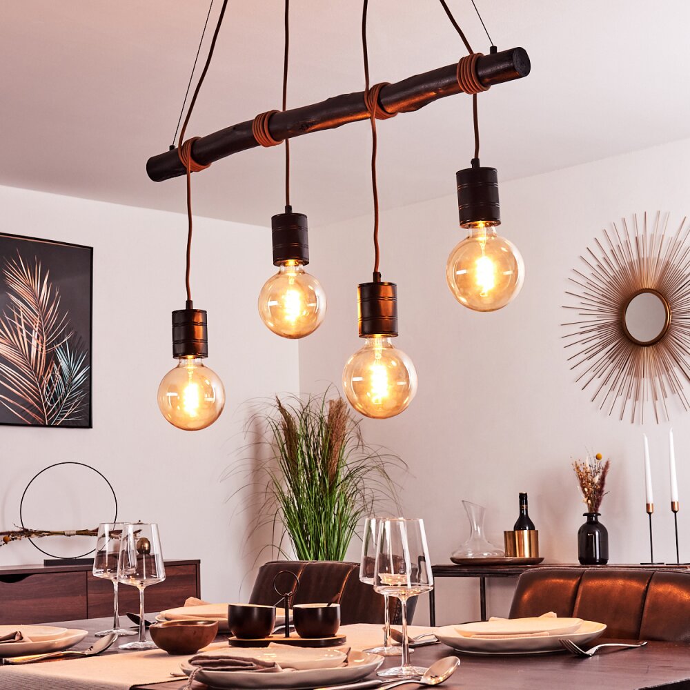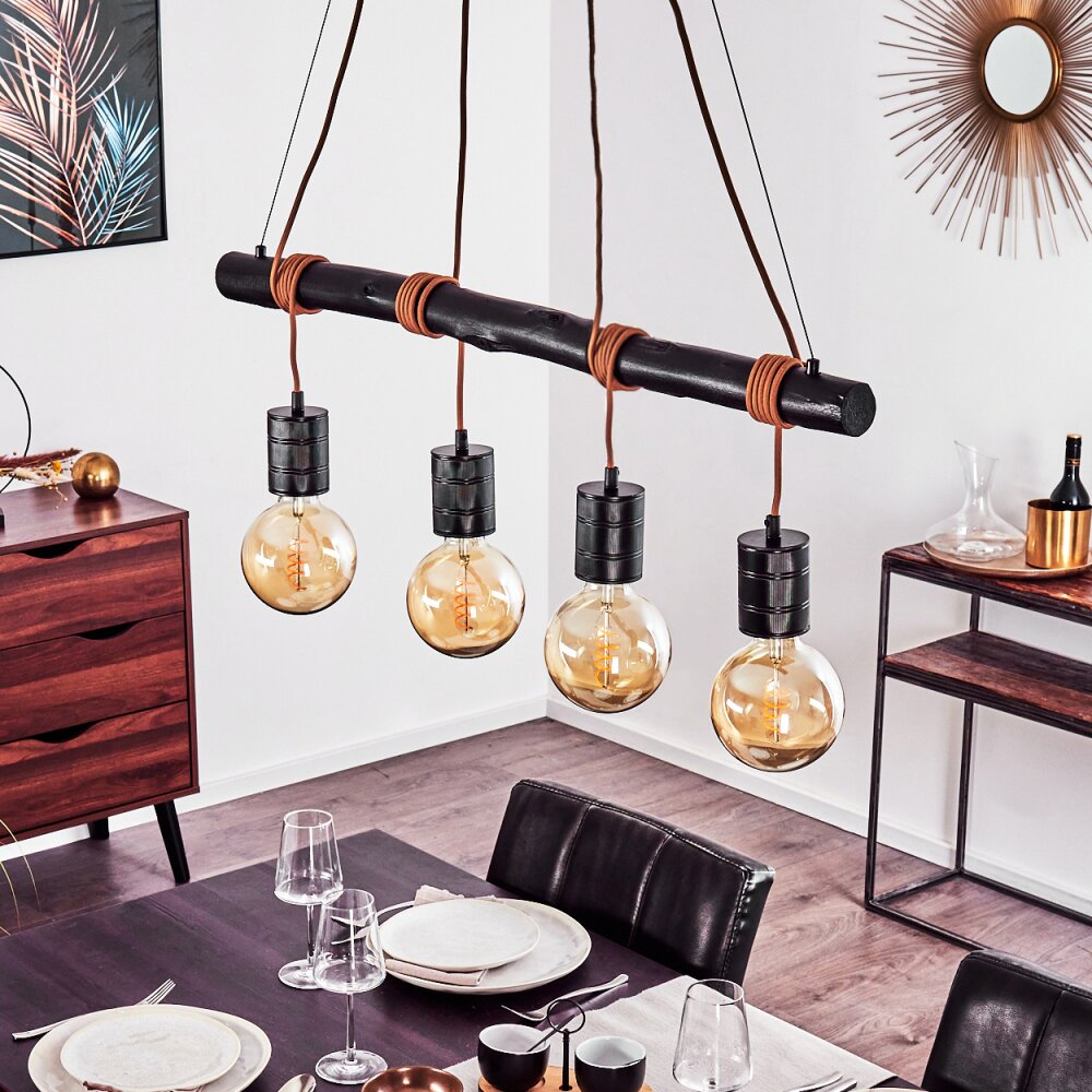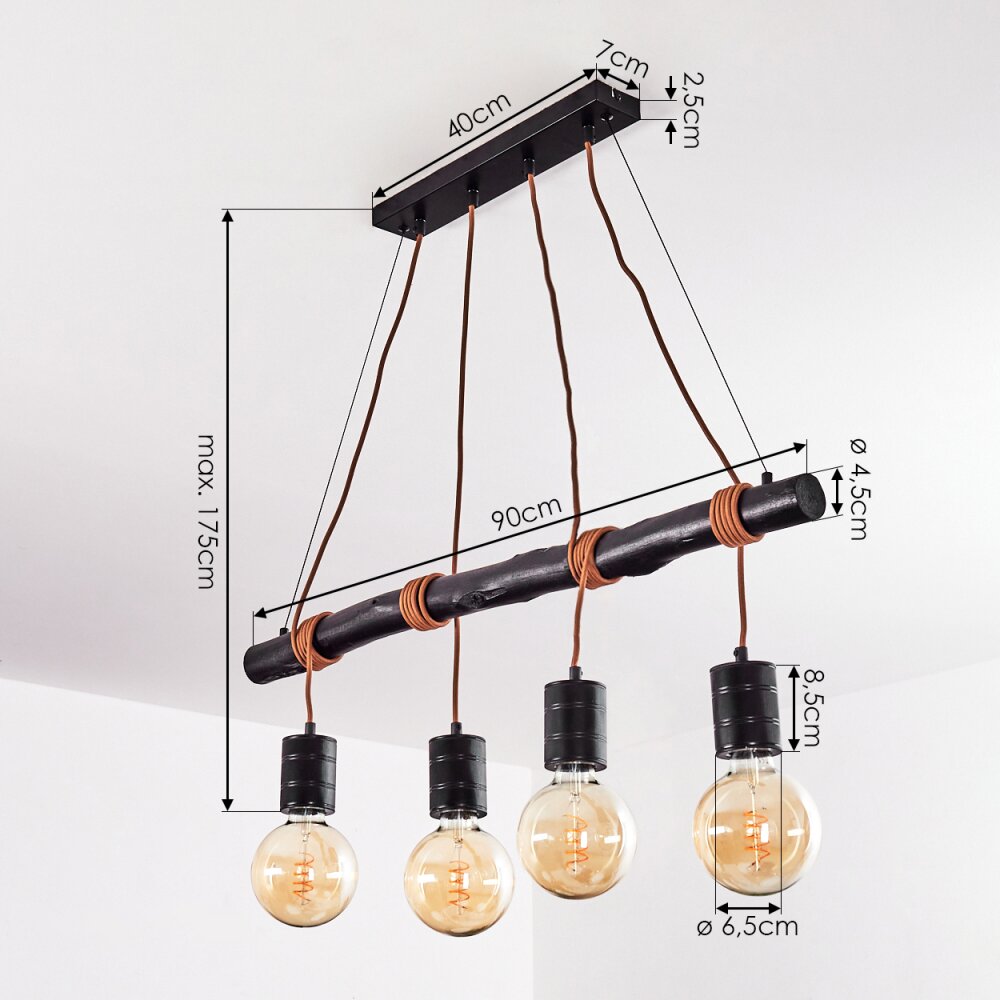Ajaccio Hanglamp Hout donker, Zwart, 4-lichts