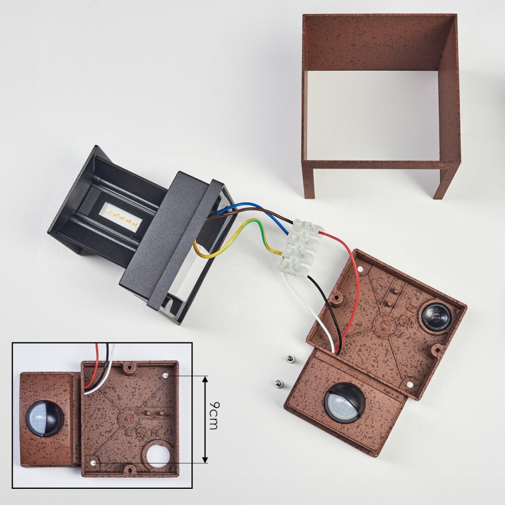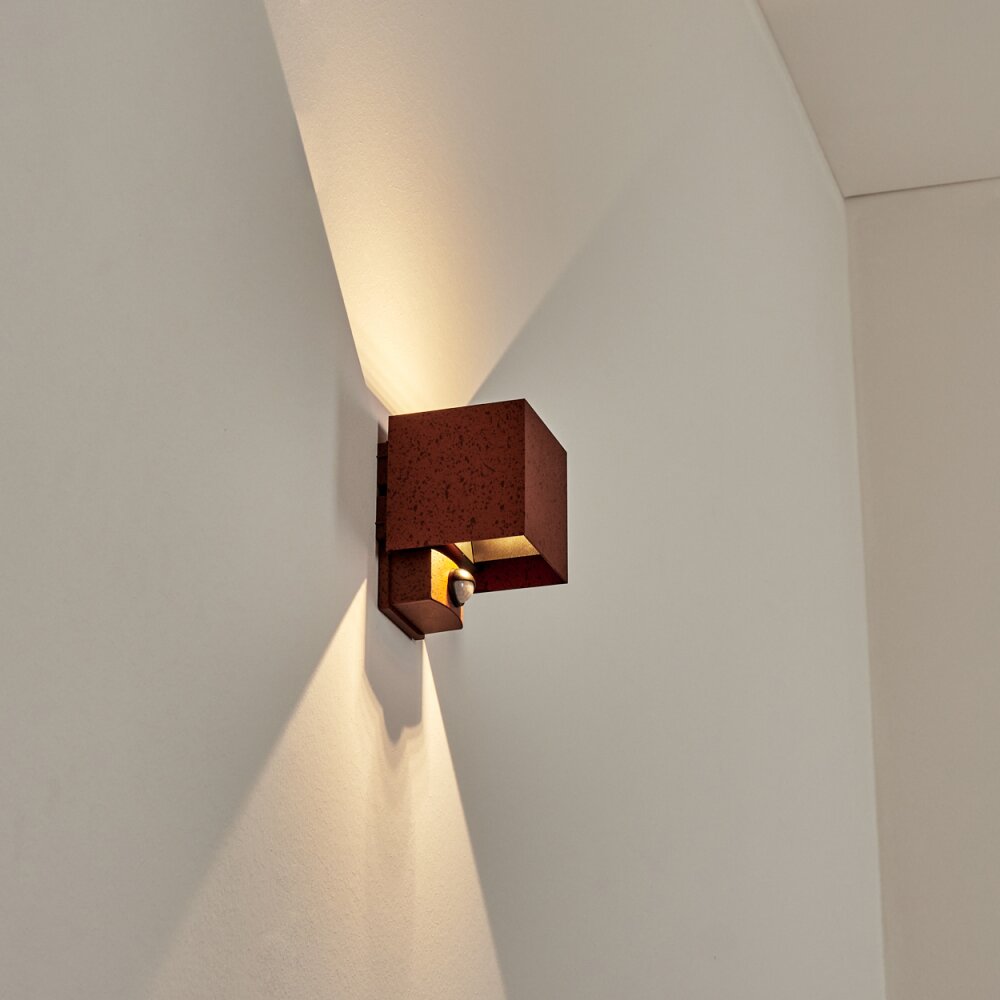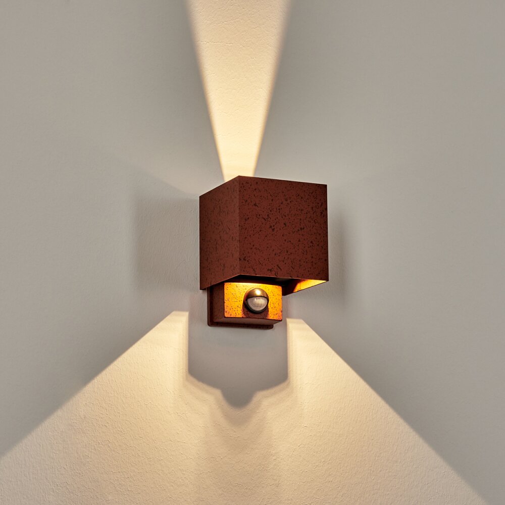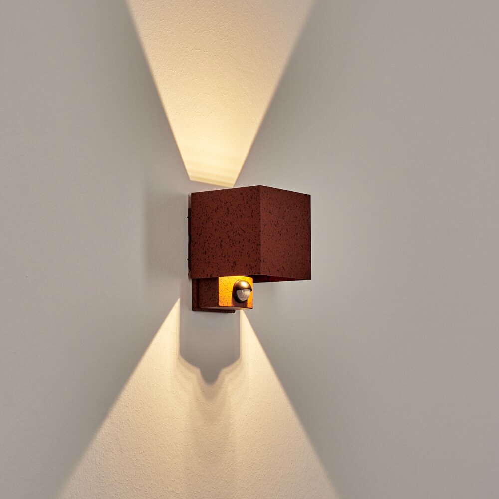 Almodofa Wandlamp voor buiten, Licht omhoog & omlaag Roest, 1-licht, Bewegingsmelder
