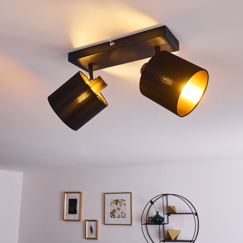 Alsen Plafondlamp Zwart-Goud, 2-lichts