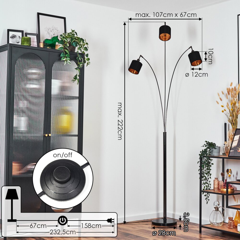 Alsen Staande lamp Chroom, Zwart, 3-lichts