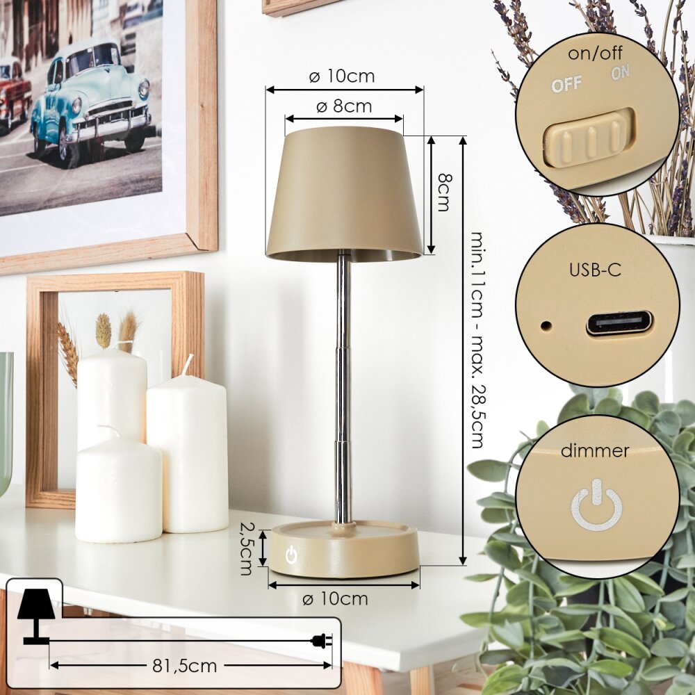 Amien Buiten tafellamp, Tafellamp LED Zandkleurig, Zilver, 1-licht