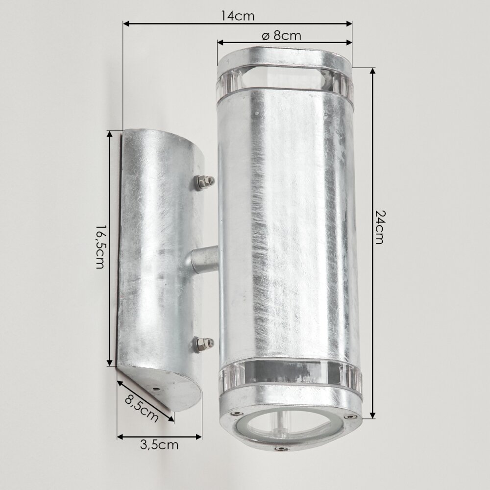 Amyton Buiten muurverlichting roestvrij staal, Transparant, Helder, Gegalvaniseerd, 2-lichts