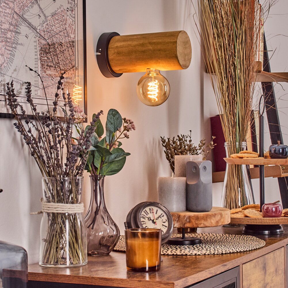 Argea Wandlamp, Muurspot Bruin, Natuurlijke kleuren, Zwart, 1-licht