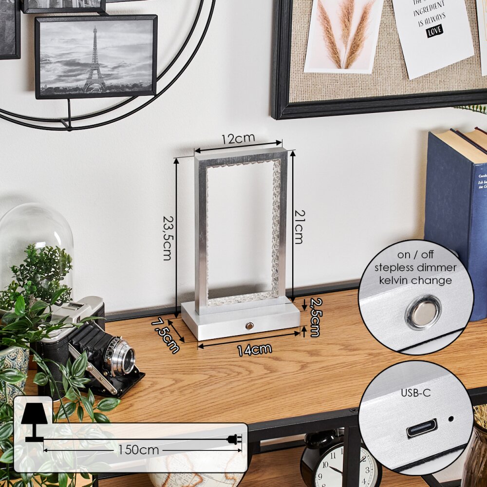 Arufe Tafellamp LED Zilver, 1-licht