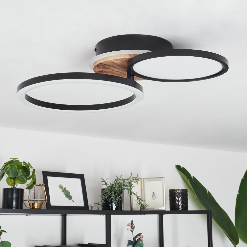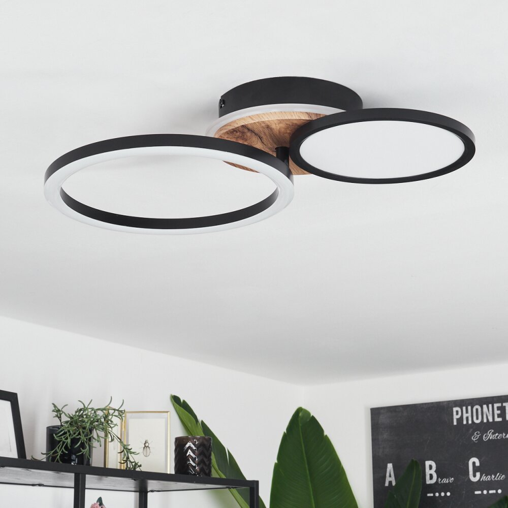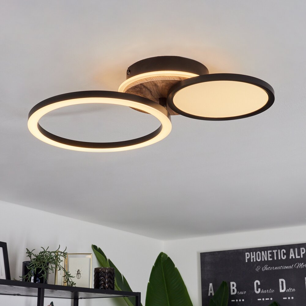 Vorlix Plafondlamp LED houtlook, Zwart, 1-licht
