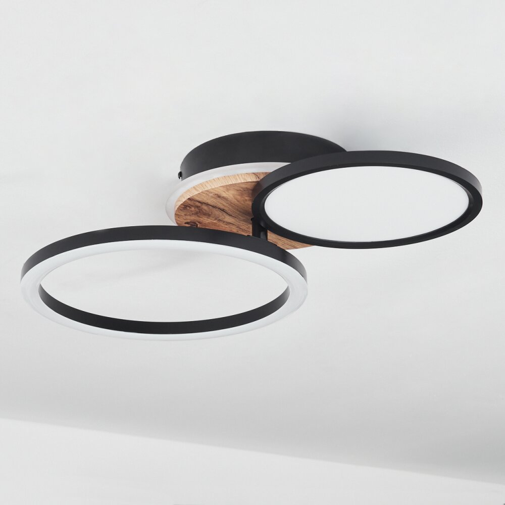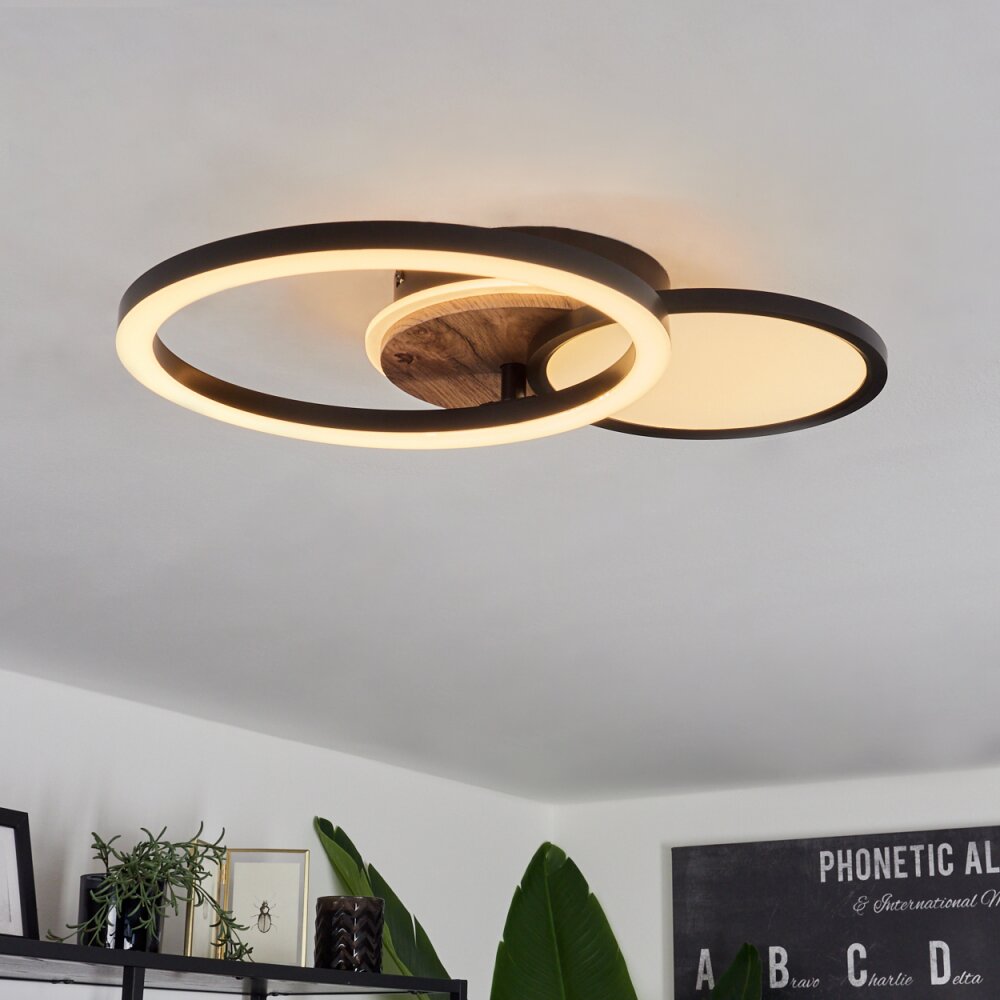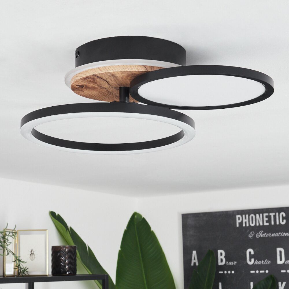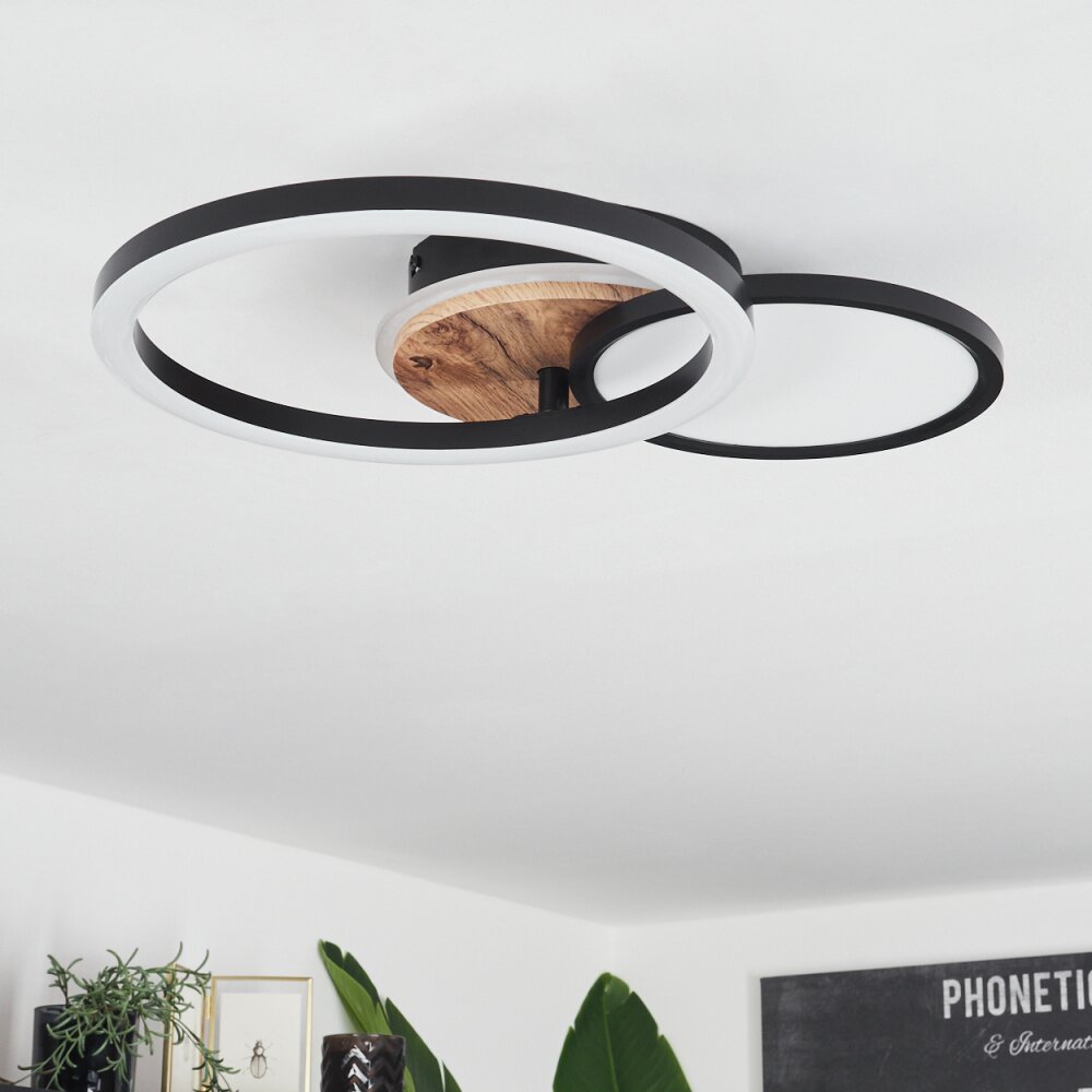 Vorlix Plafondlamp LED houtlook, Zwart, 1-licht