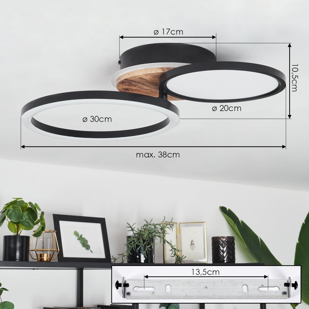 Falmir Plafondlamp LED houtlook, Zwart, 1-licht