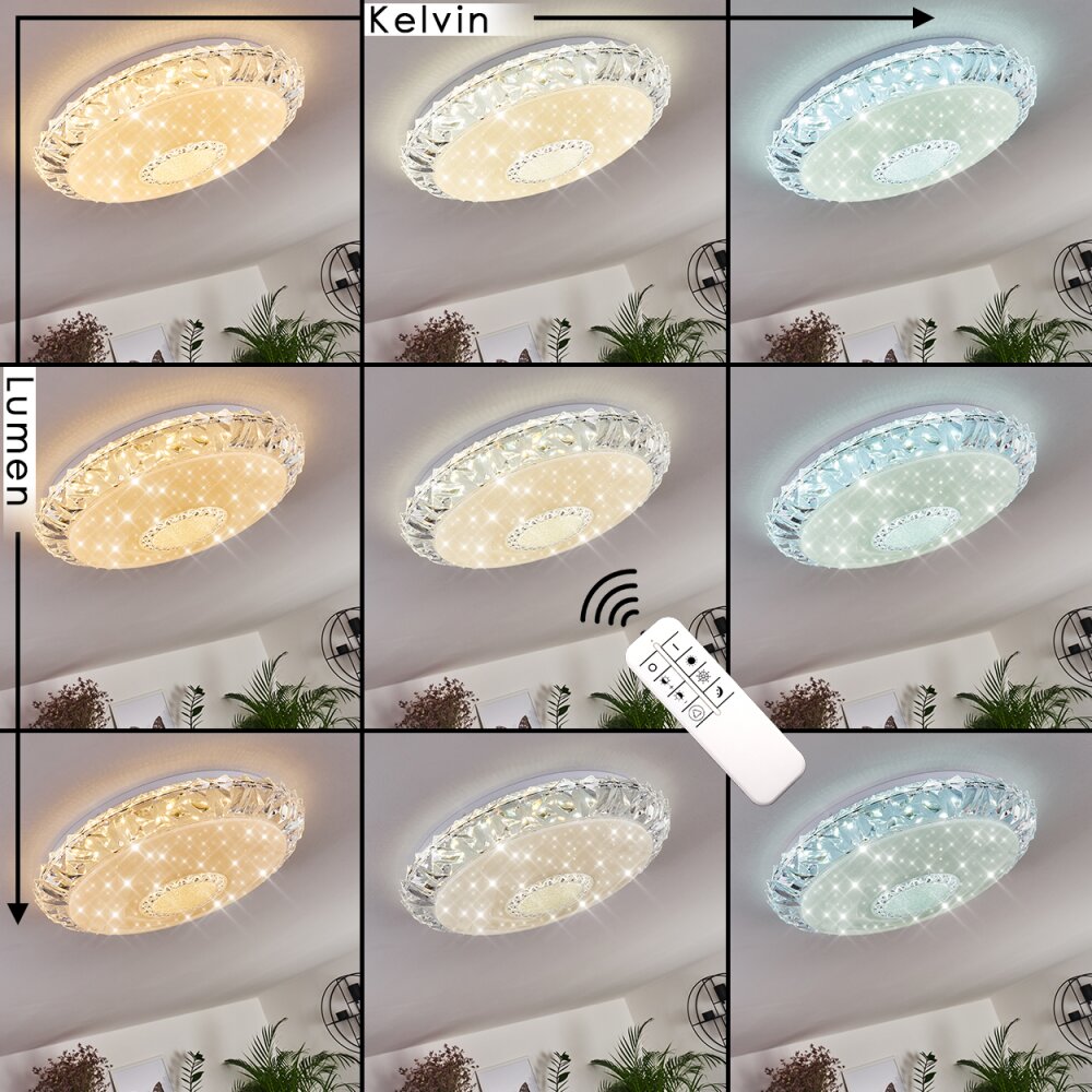 Avoriaz Plafondlamp LED Transparant, Helder, Wit, 1-licht, Afstandsbediening
