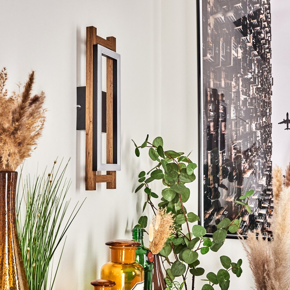 Ayajasco Muurlamp LED houtlook, Natuurlijke kleuren, Zwart, 1-licht