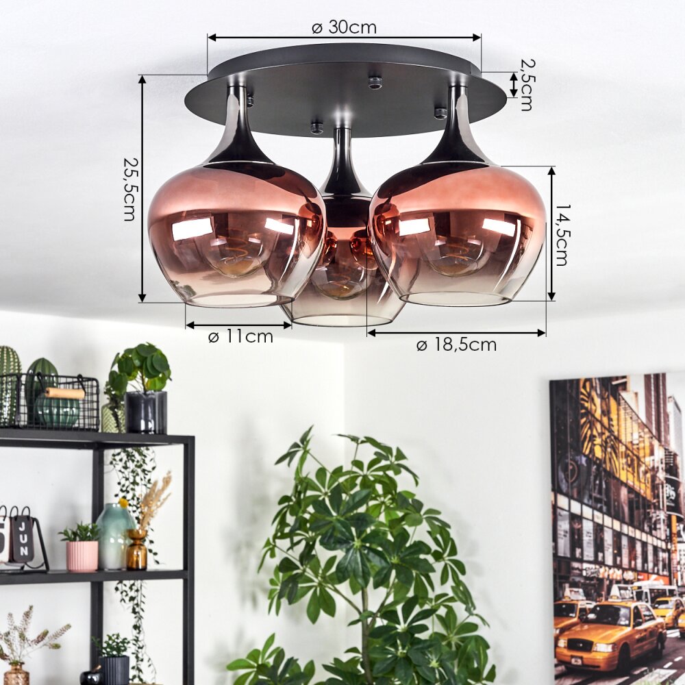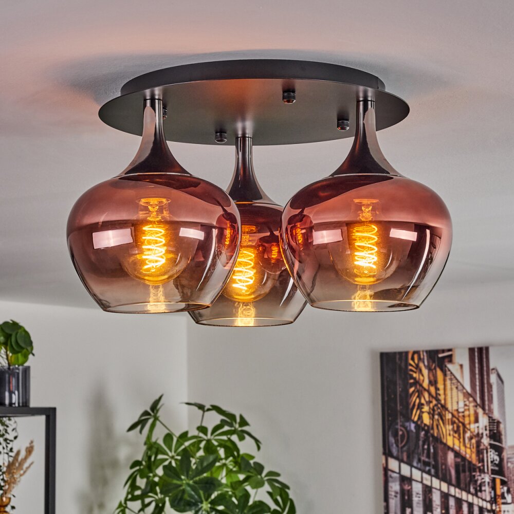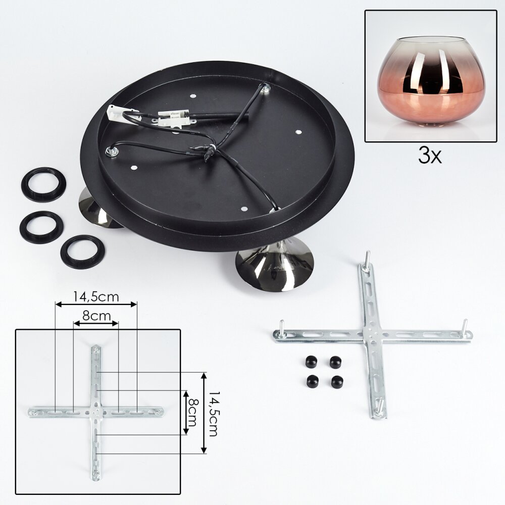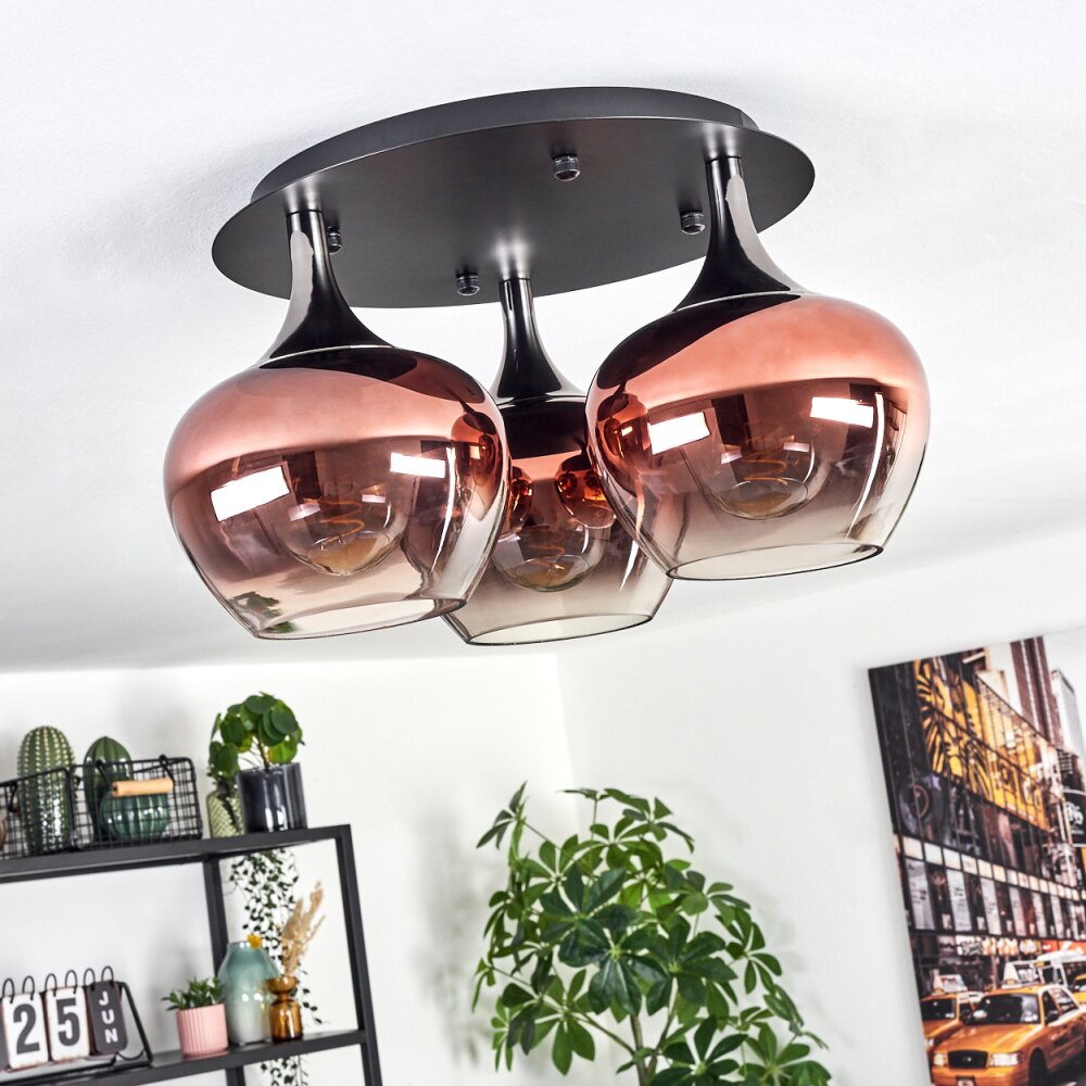 Azurara Plafondlamp Chroom, Zwart, 3-lichts