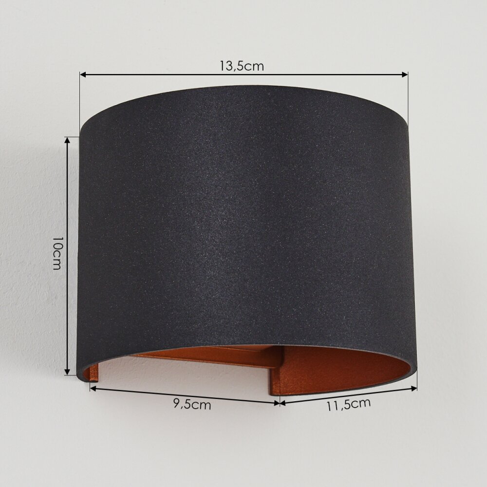 Badajoz Muurlamp Koperkleurig, Zwart, 1-licht