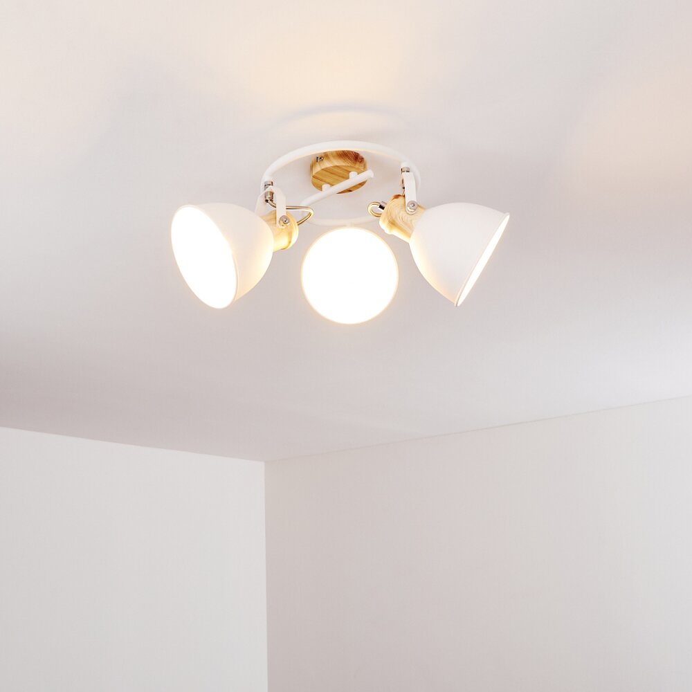 Banjul Plafondlamp Hout licht, Wit, 3-lichts