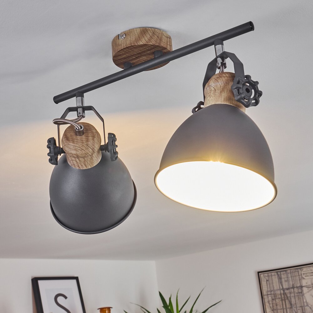 Banjul Plafondlamp Grijs, Hout licht, 2-lichts
