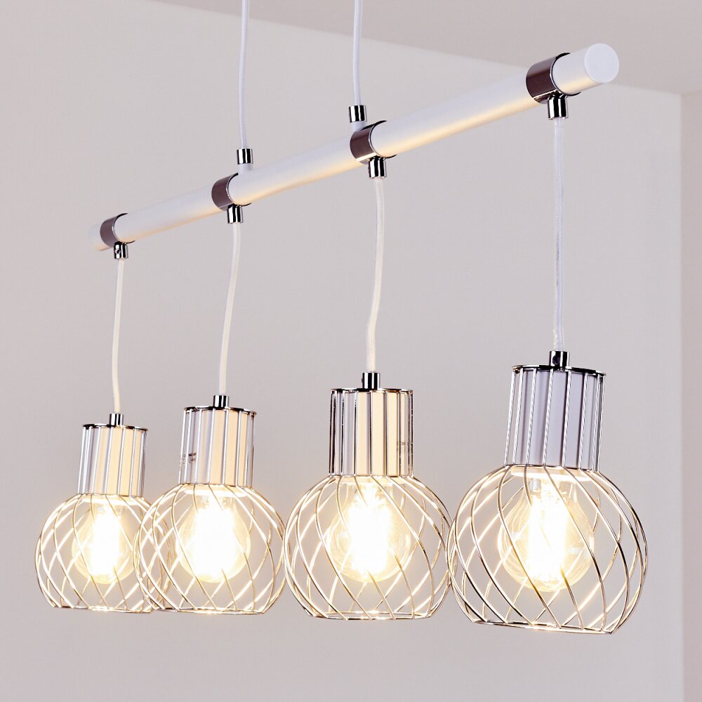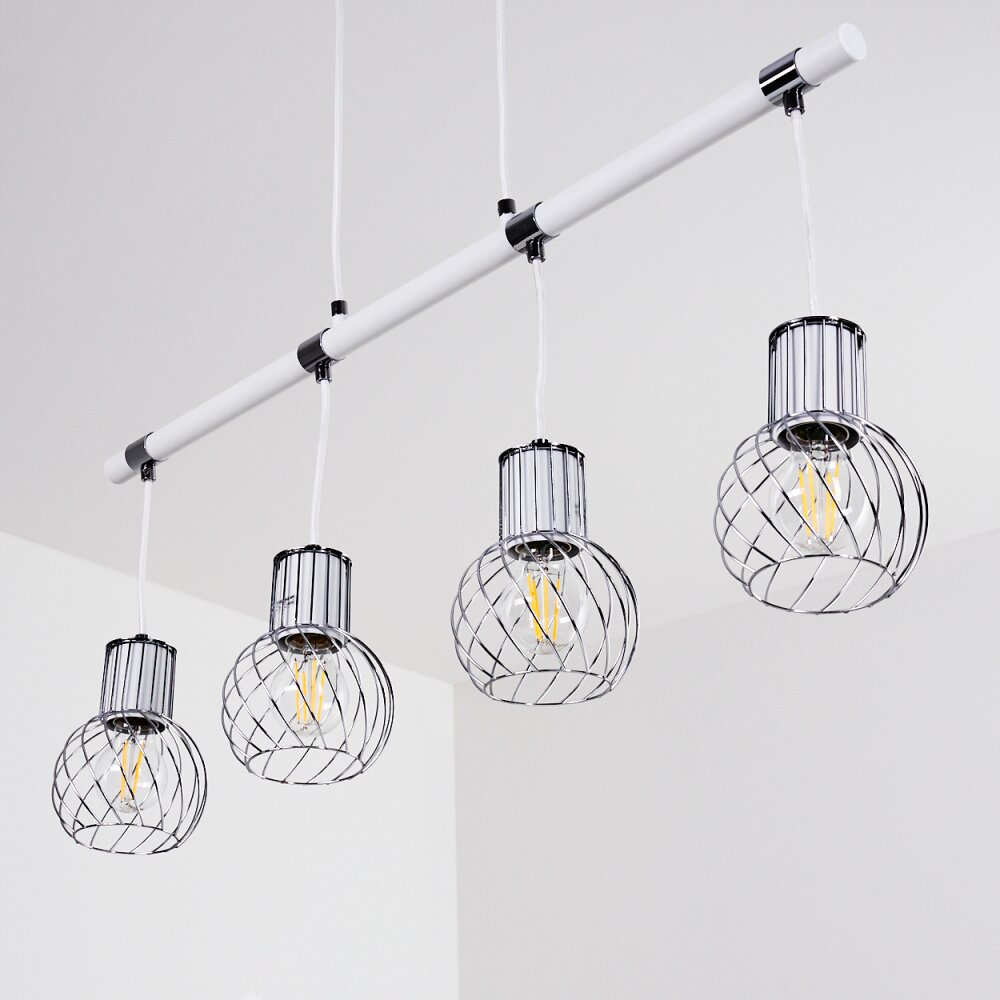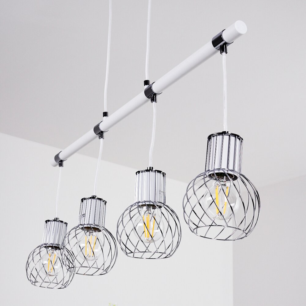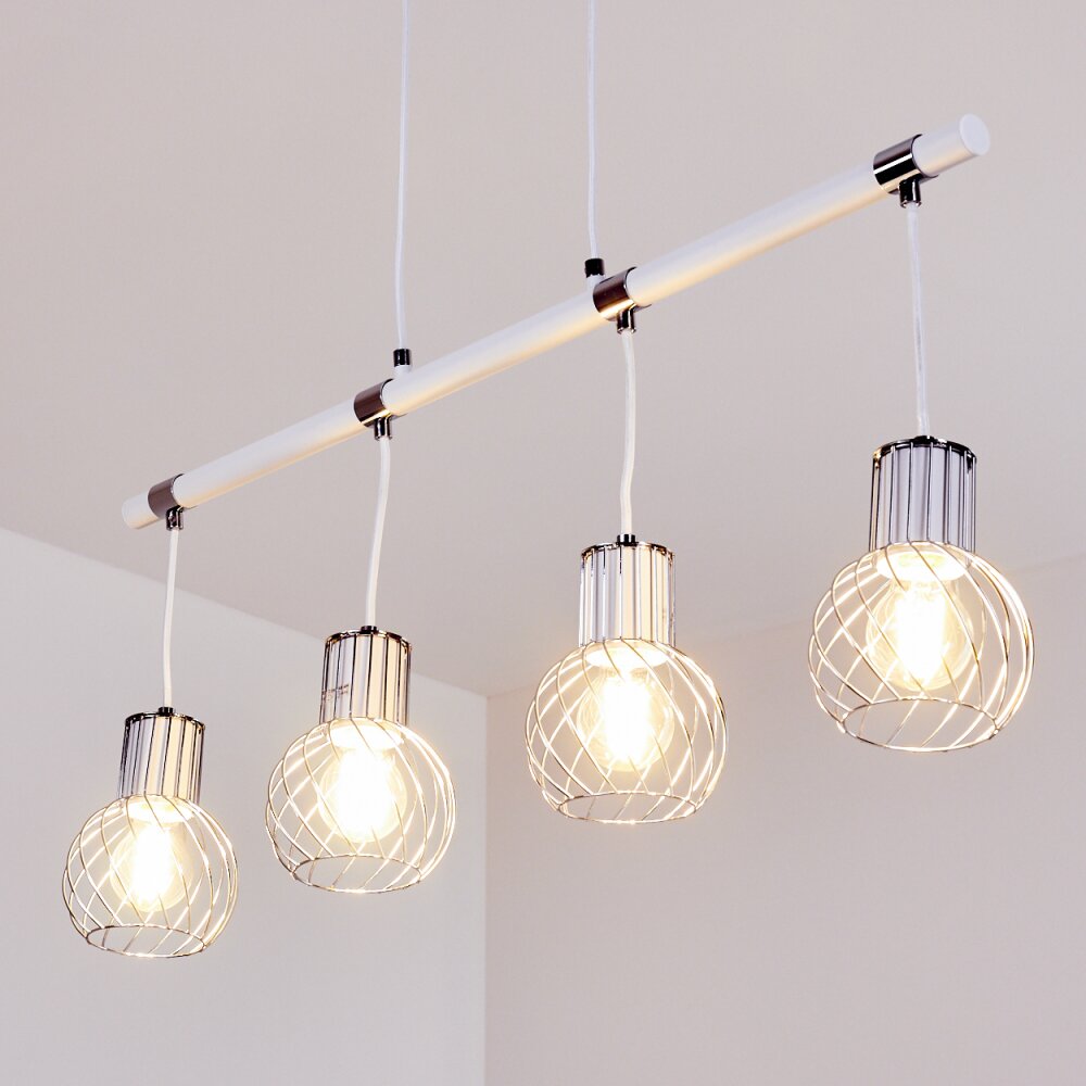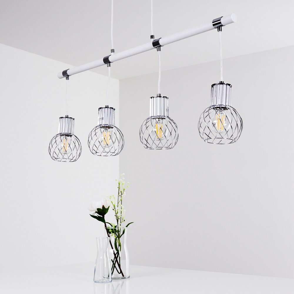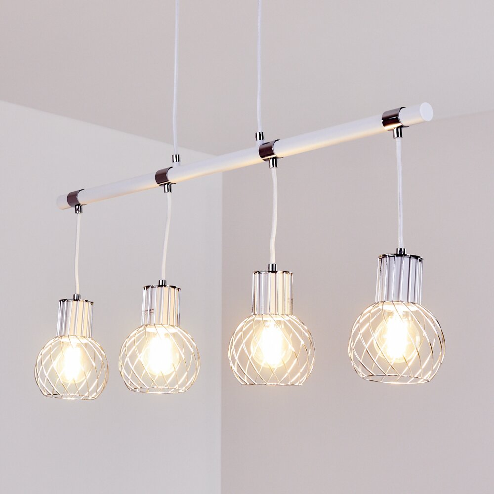 Barakaldo Hanglamp Chroom, Wit, 4-lichts
