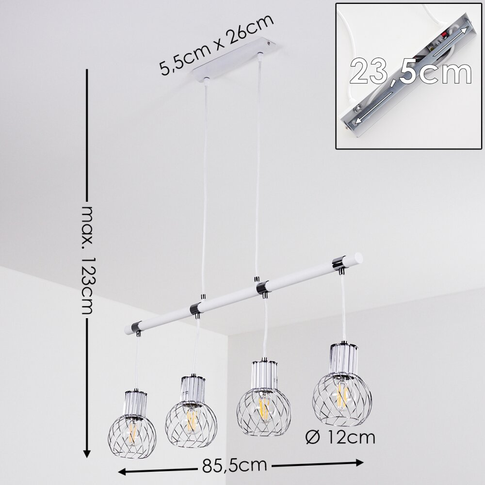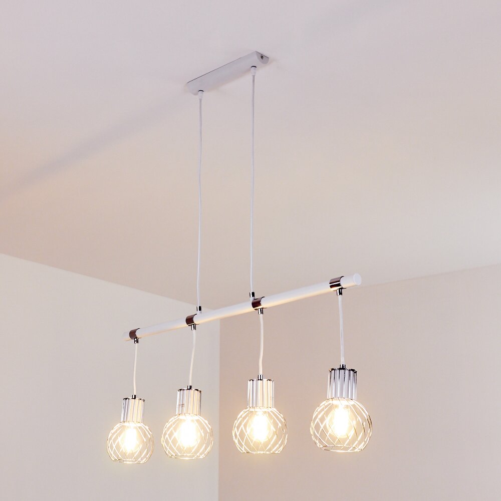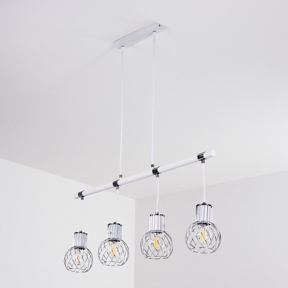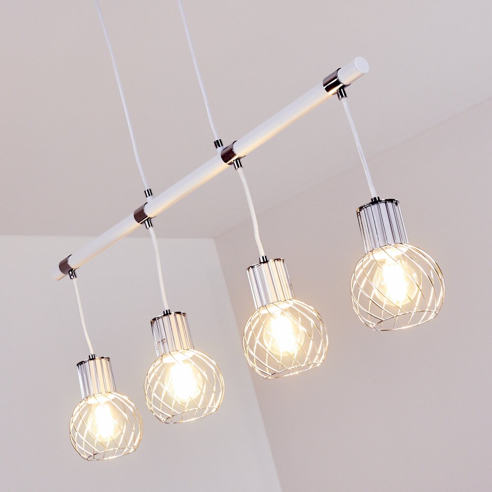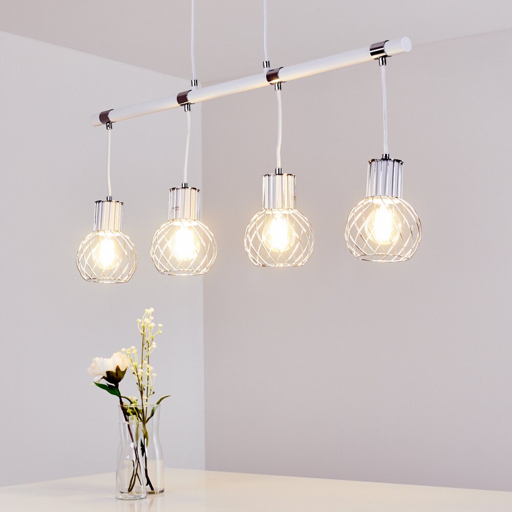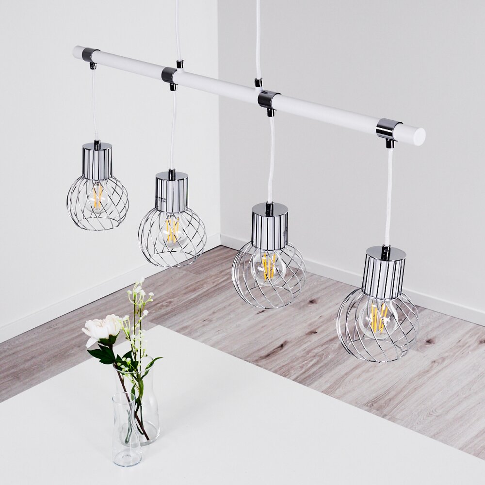 Barakaldo Hanglamp Chroom, Wit, 4-lichts