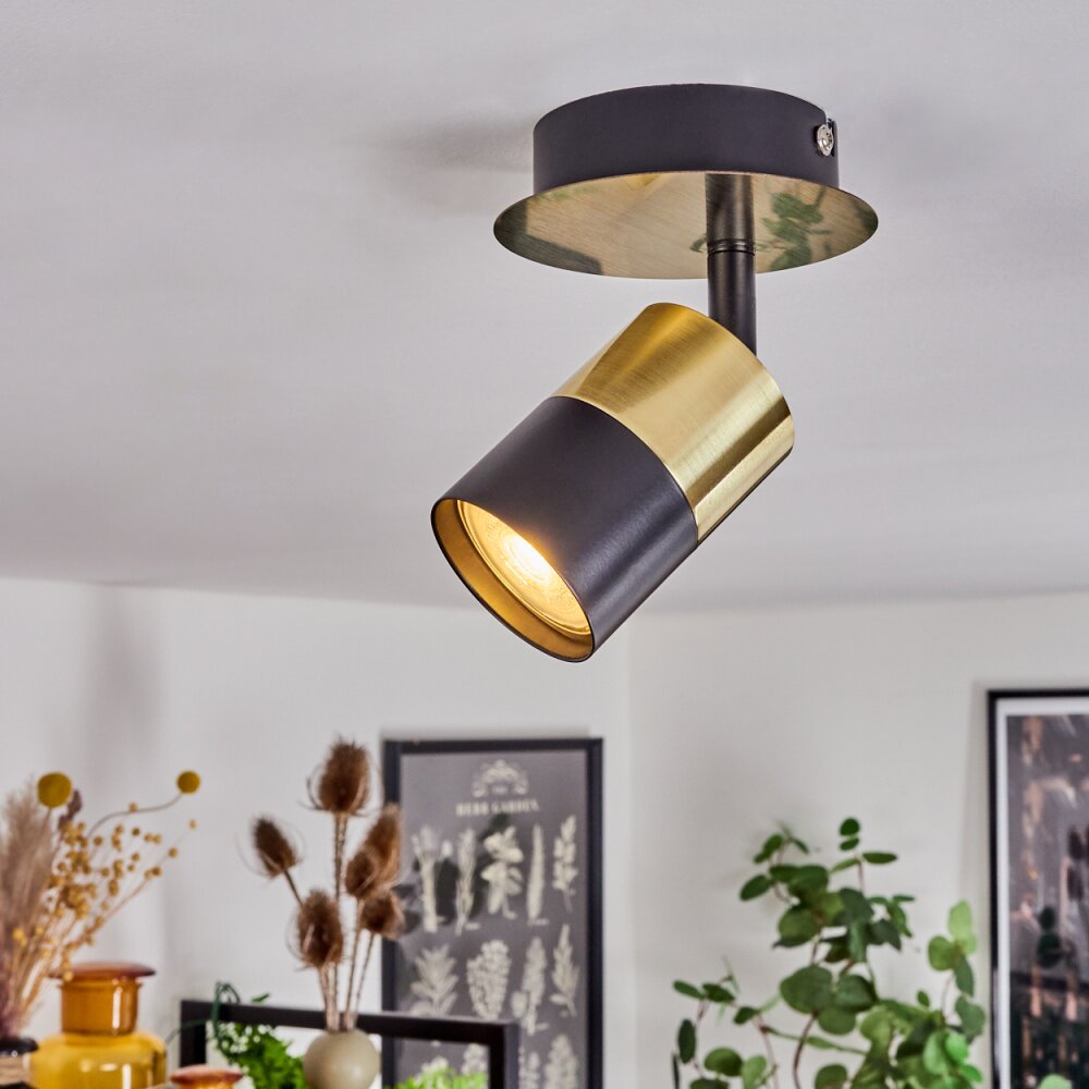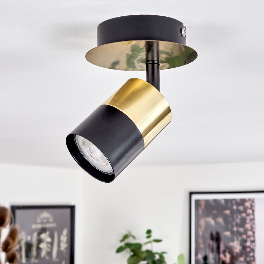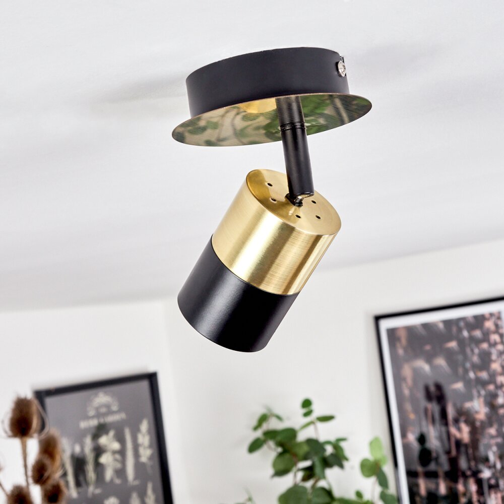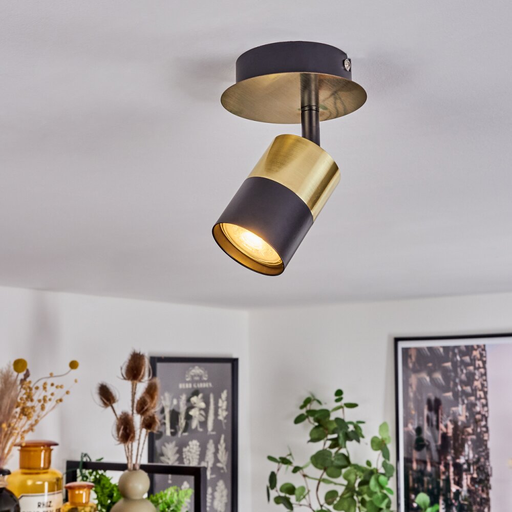 Barasat Plafondlamp Messing, Zwart, 1-licht