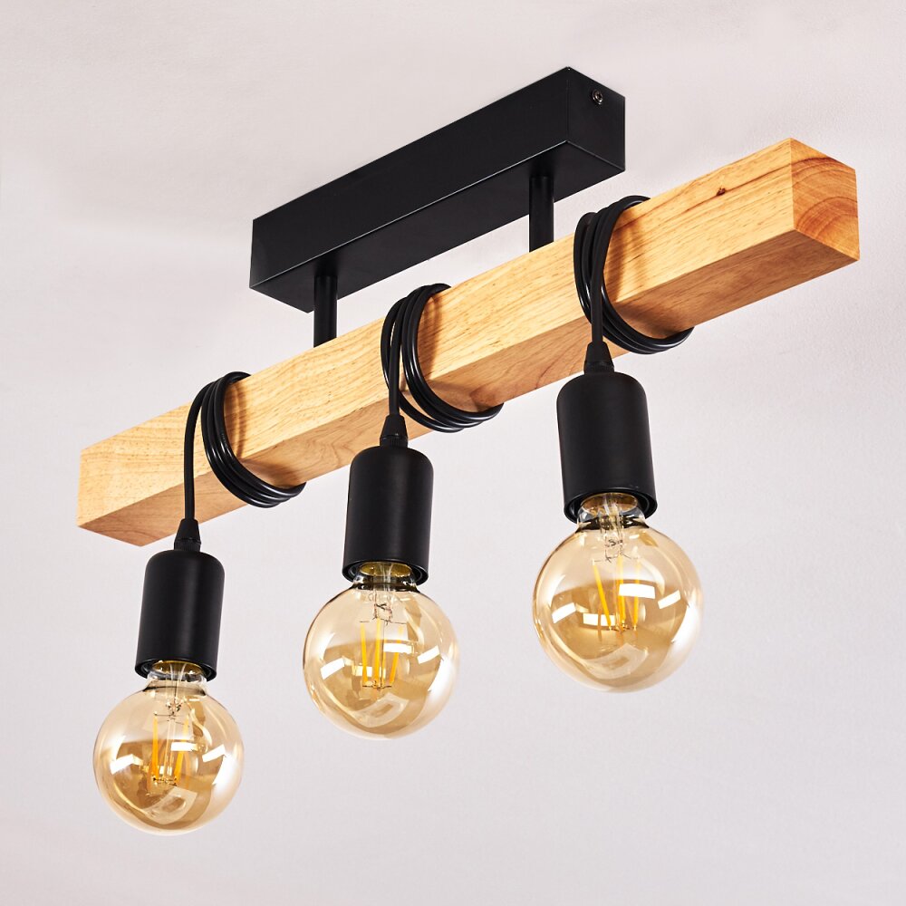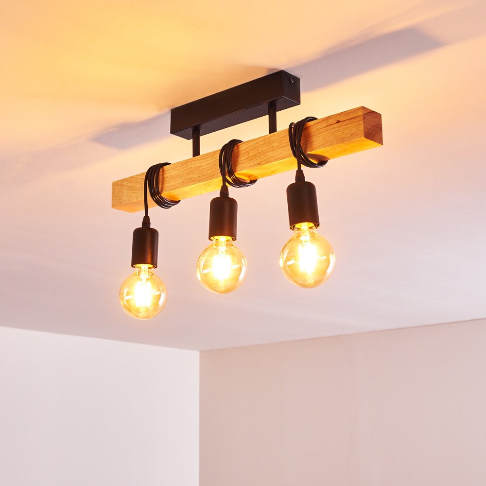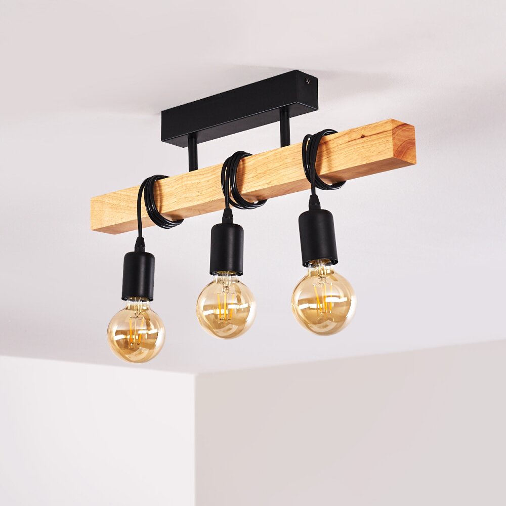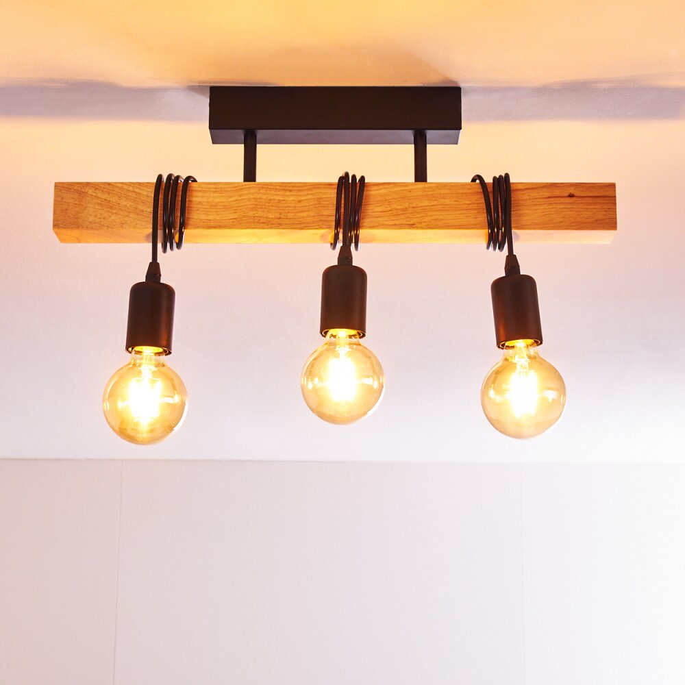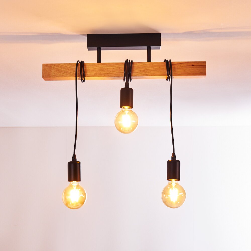 Macos Plafondlamp LED houtlook, Zwart, 1-licht