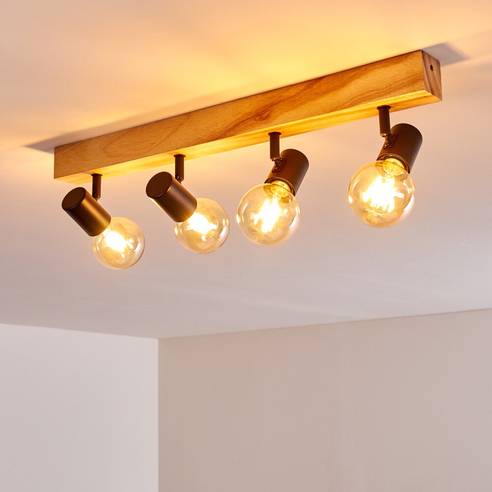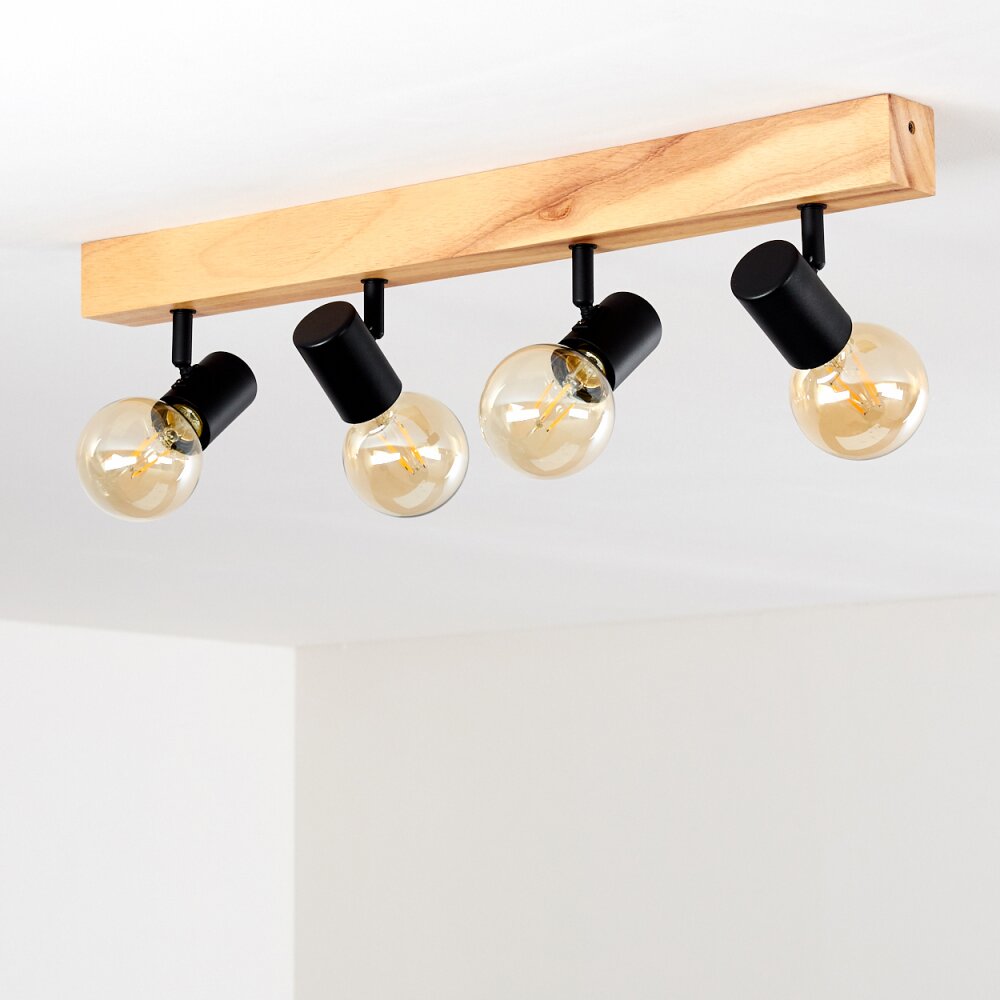 Barbengo Plafondlamp Hout licht, Zwart, 4-lichts