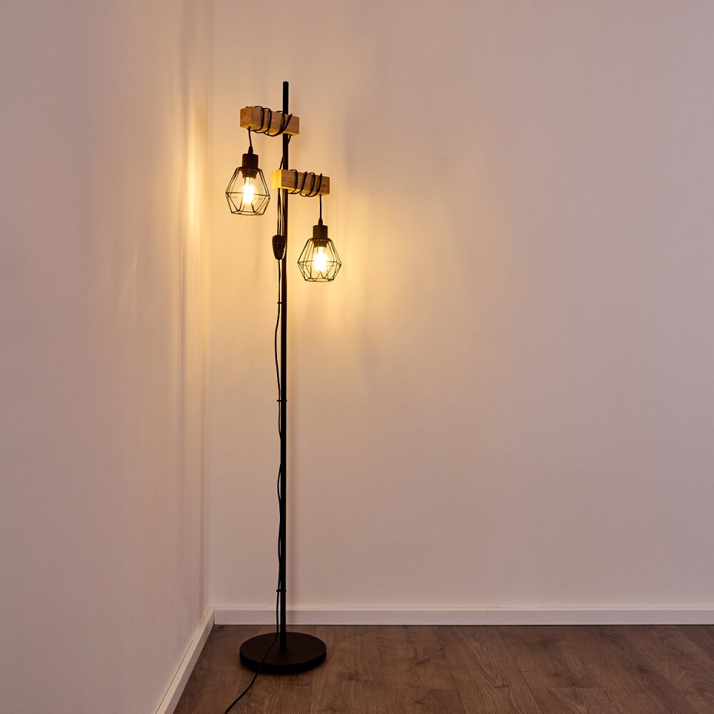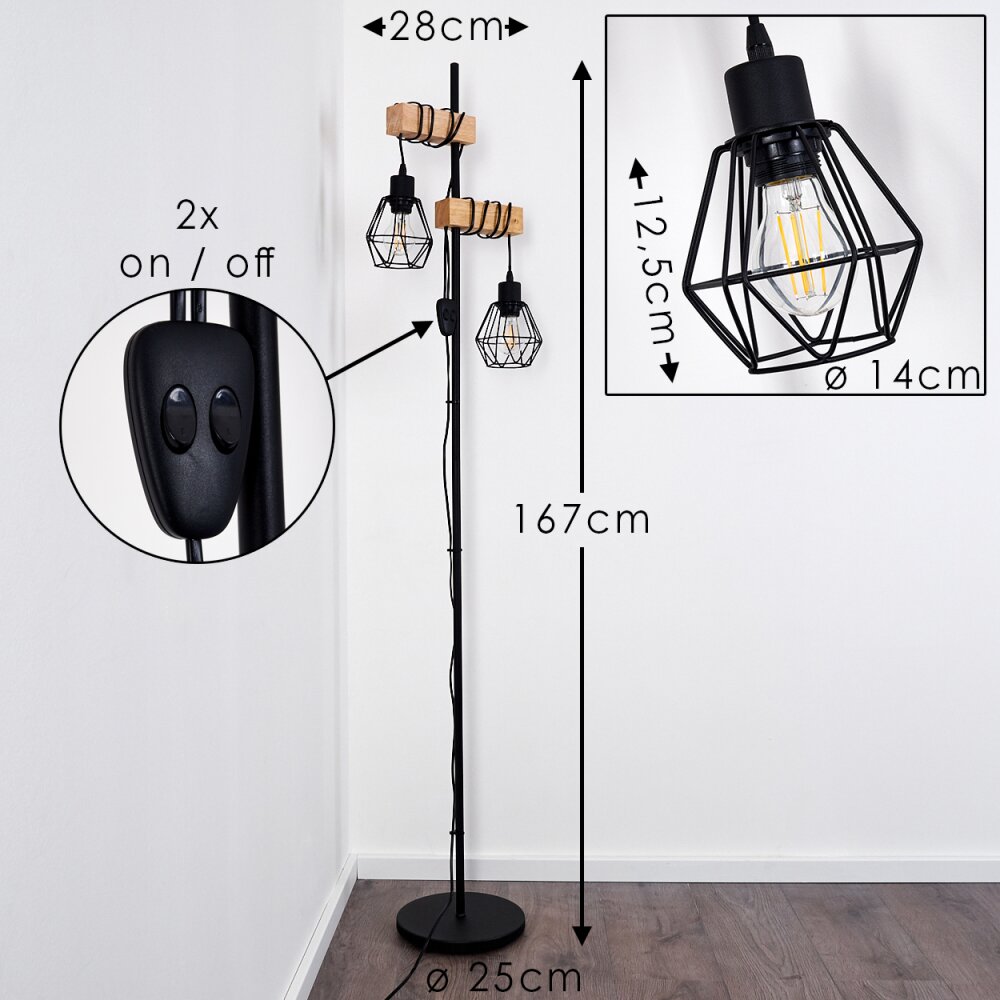 Barbengo Staande lamp Hout licht, Zwart, 2-lichts