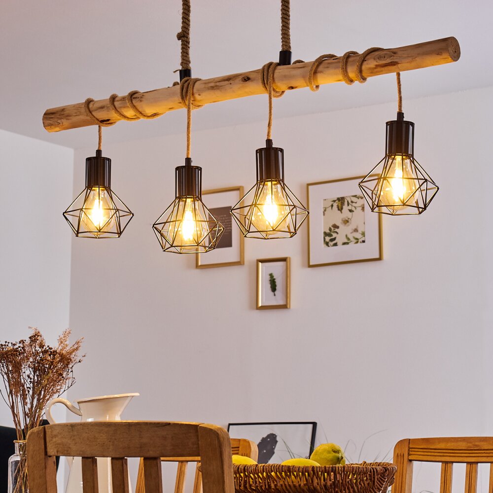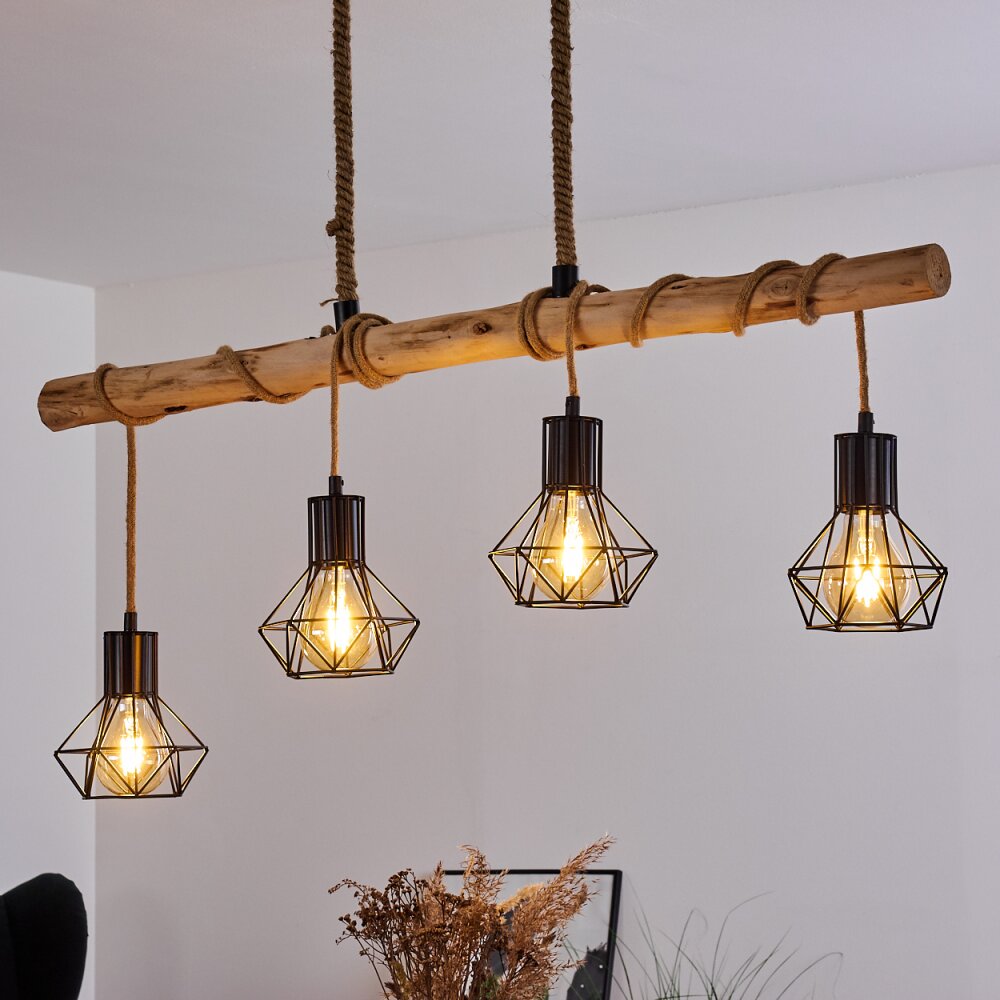 Bardhaman Hanglamp Bruin, Zwart, 4-lichts