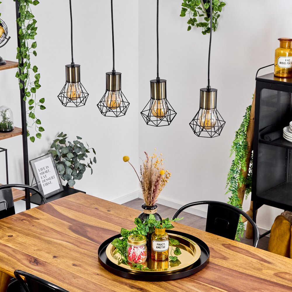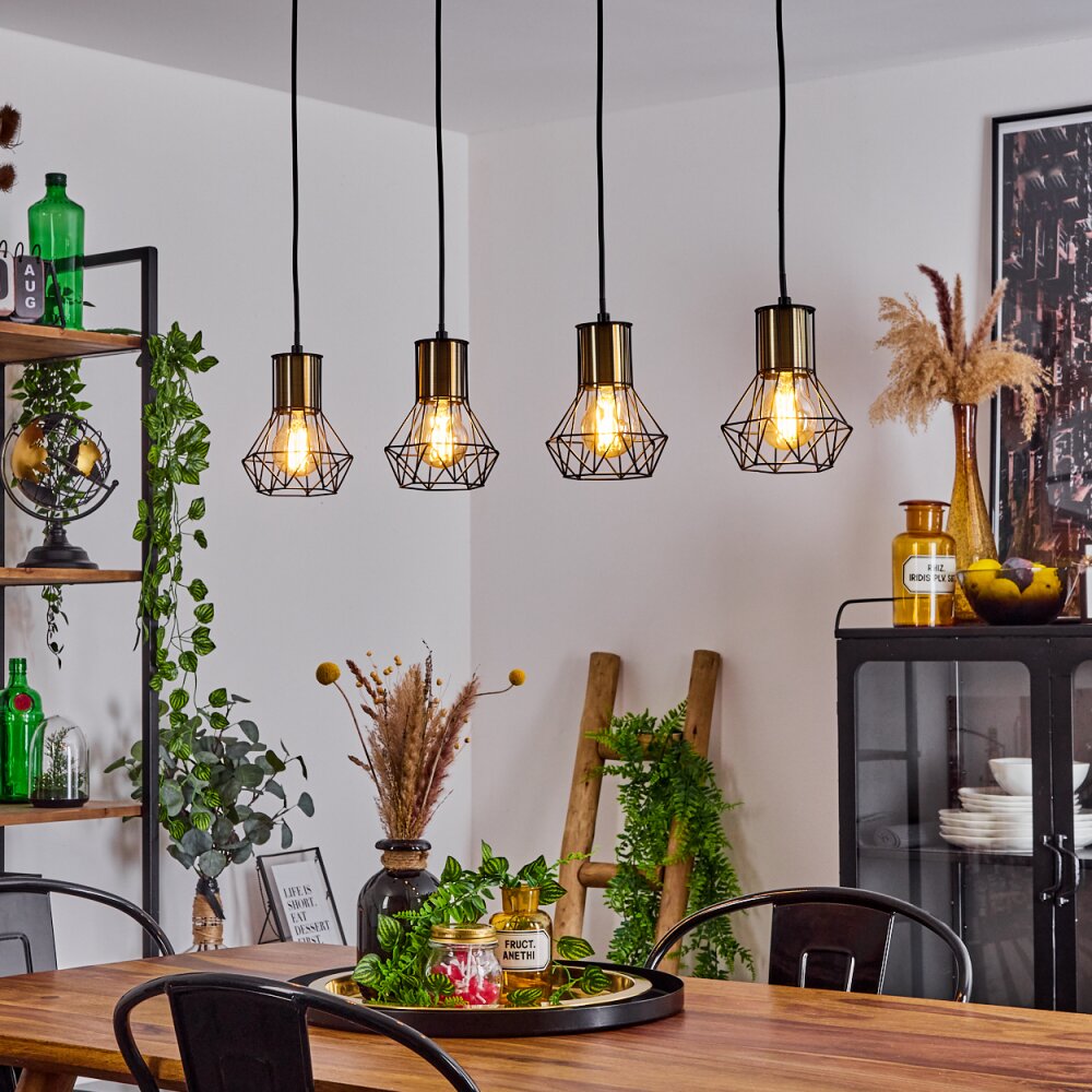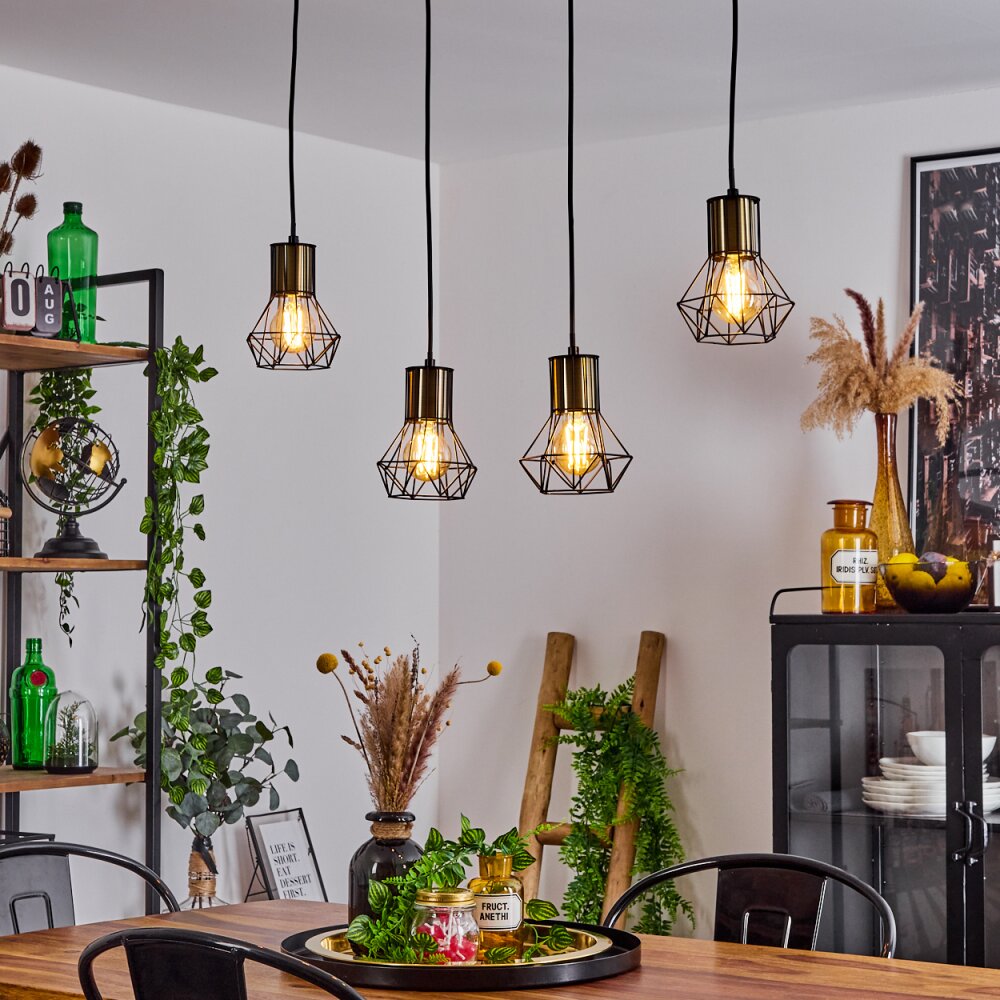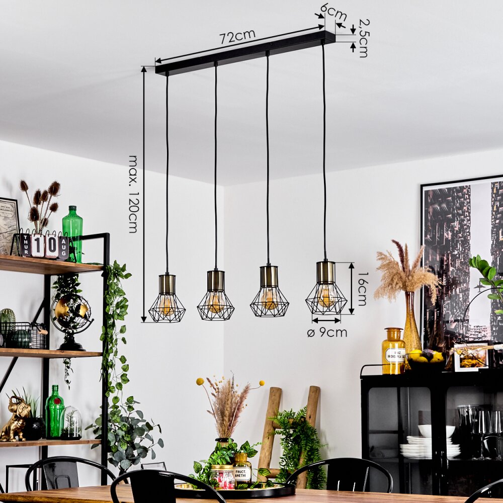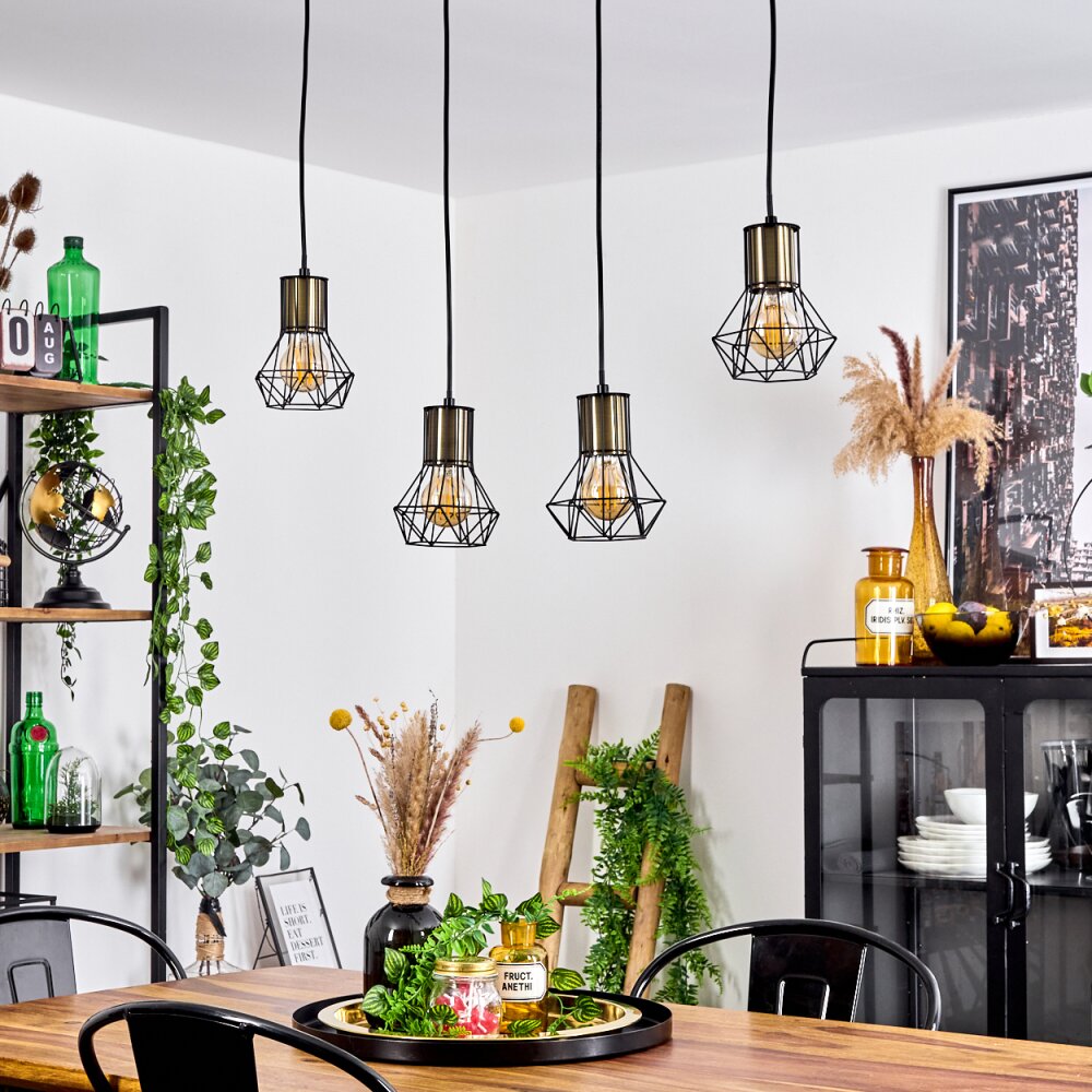 Veria Hanglamp, Hanglamp Messing, Zwart, 4-lichts