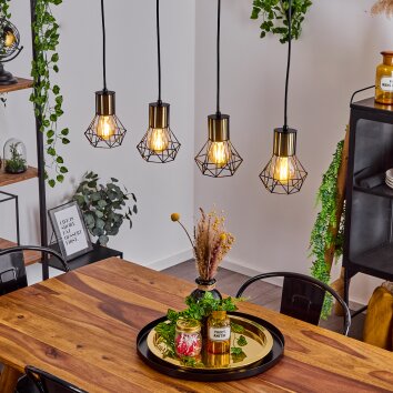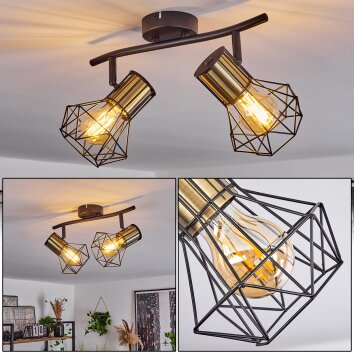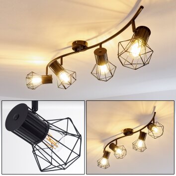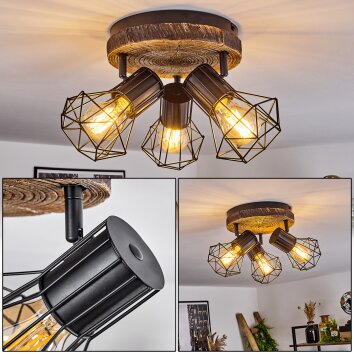 Bardhaman Plafondlamp Bruin, houtlook, Zwart, 4-lichts