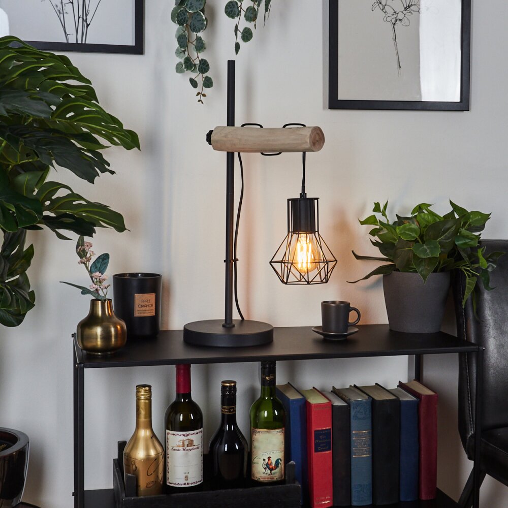 Hasteboda Tafellamp Bruin, houtlook, 1-licht