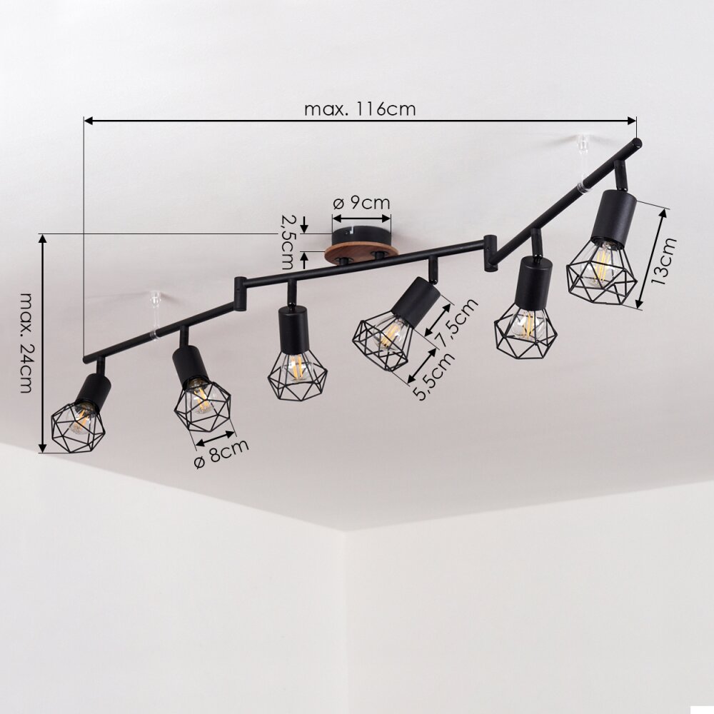 Gesteira Plafondlamp, Plafondspot Natuurlijke kleuren, Zwart, 6-lichts