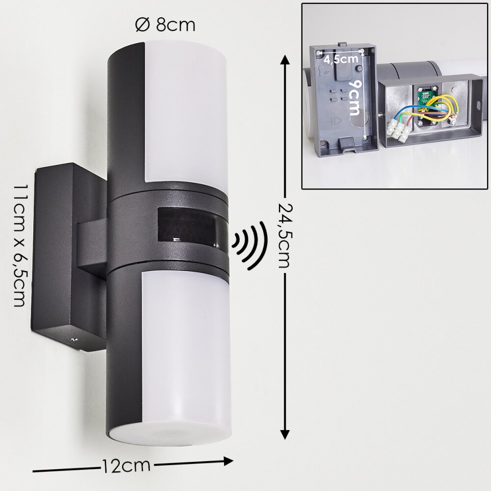Baulund Buiten muurverlichting LED Antraciet, 1-licht, Bewegingsmelder