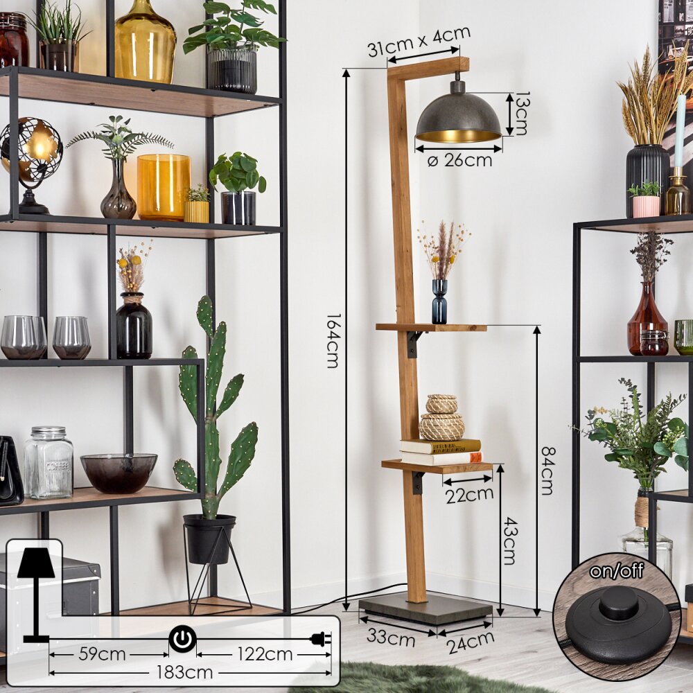 Baval Staande lamp Natuurlijke kleuren, Antiek nikkel, 1-licht