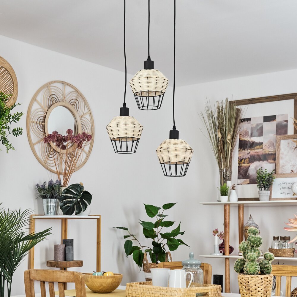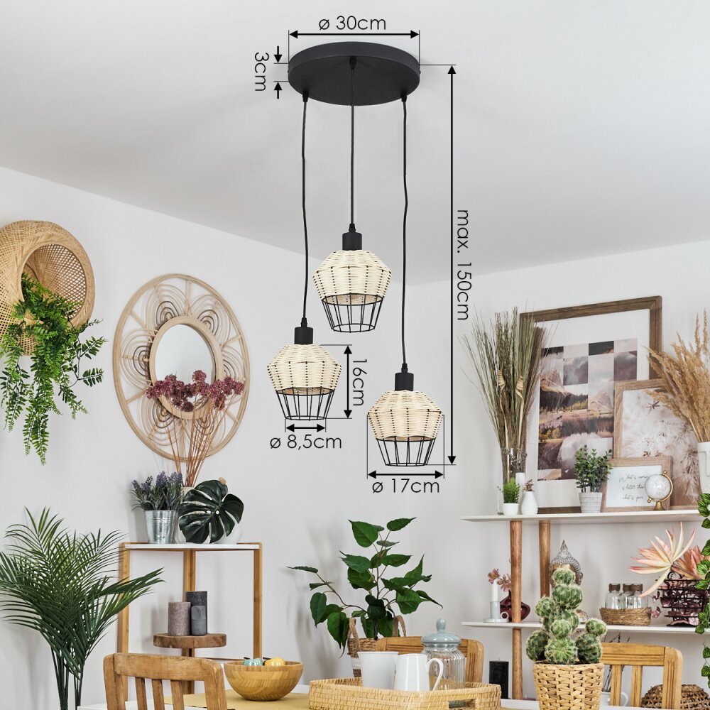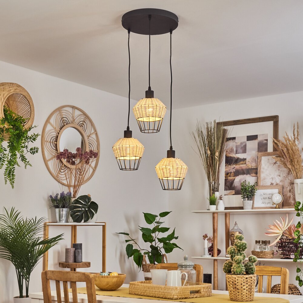 Benagil Hanger Hout licht, Zwart, 3-lichts