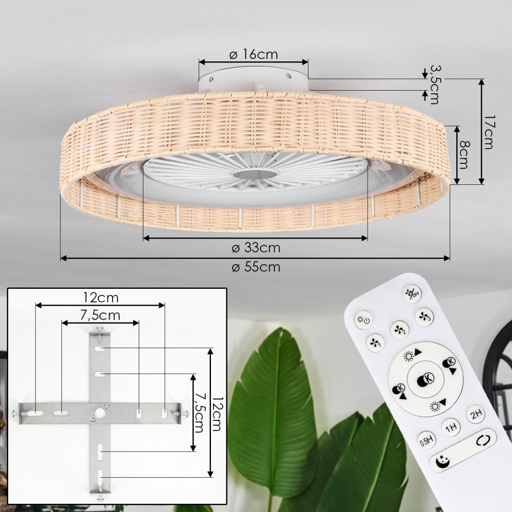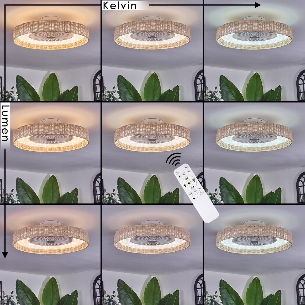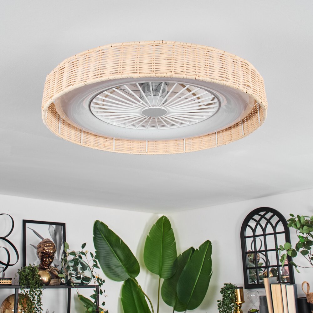 Benasal Plafondlamp, Plafondventilator met verlichting Natuurlijke kleuren, Wit, 1-licht, Afstandsbediening