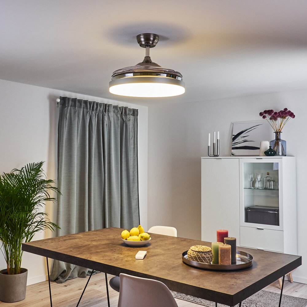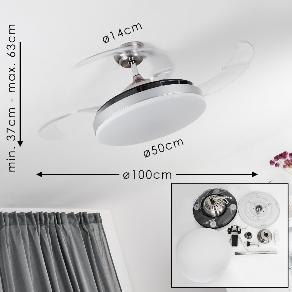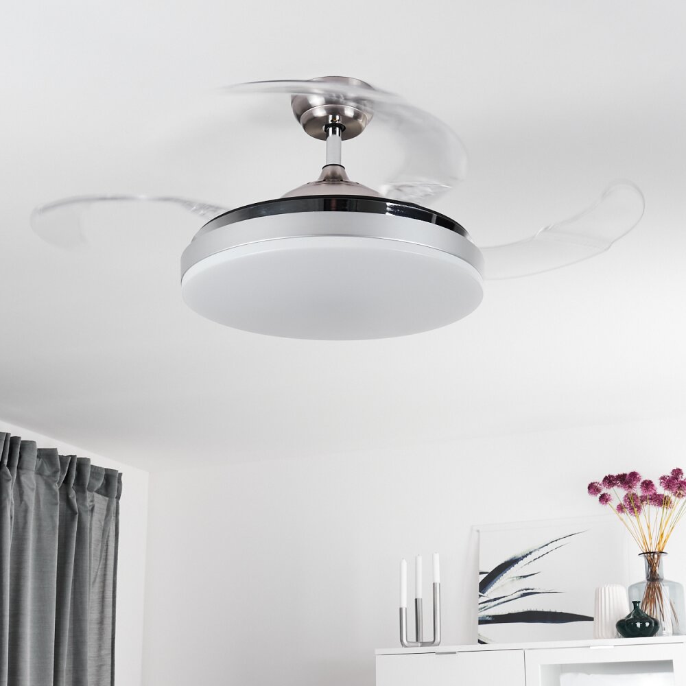 Hyacinthe Plafondlamp, Plafondventilator met verlichting LED Chroom, Zwart, 1-licht, Afstandsbediening