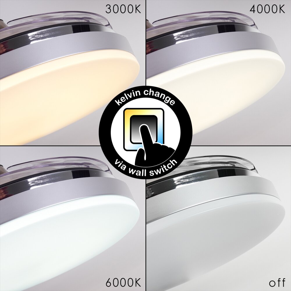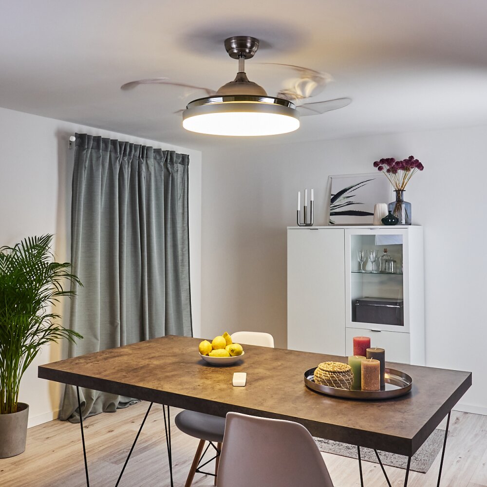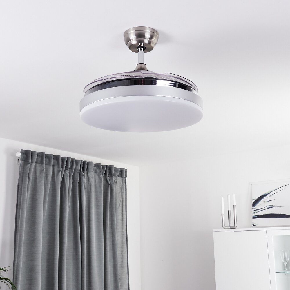 Piacenza plafondventilator LED Chroom, Wit, 1-licht, Afstandsbediening