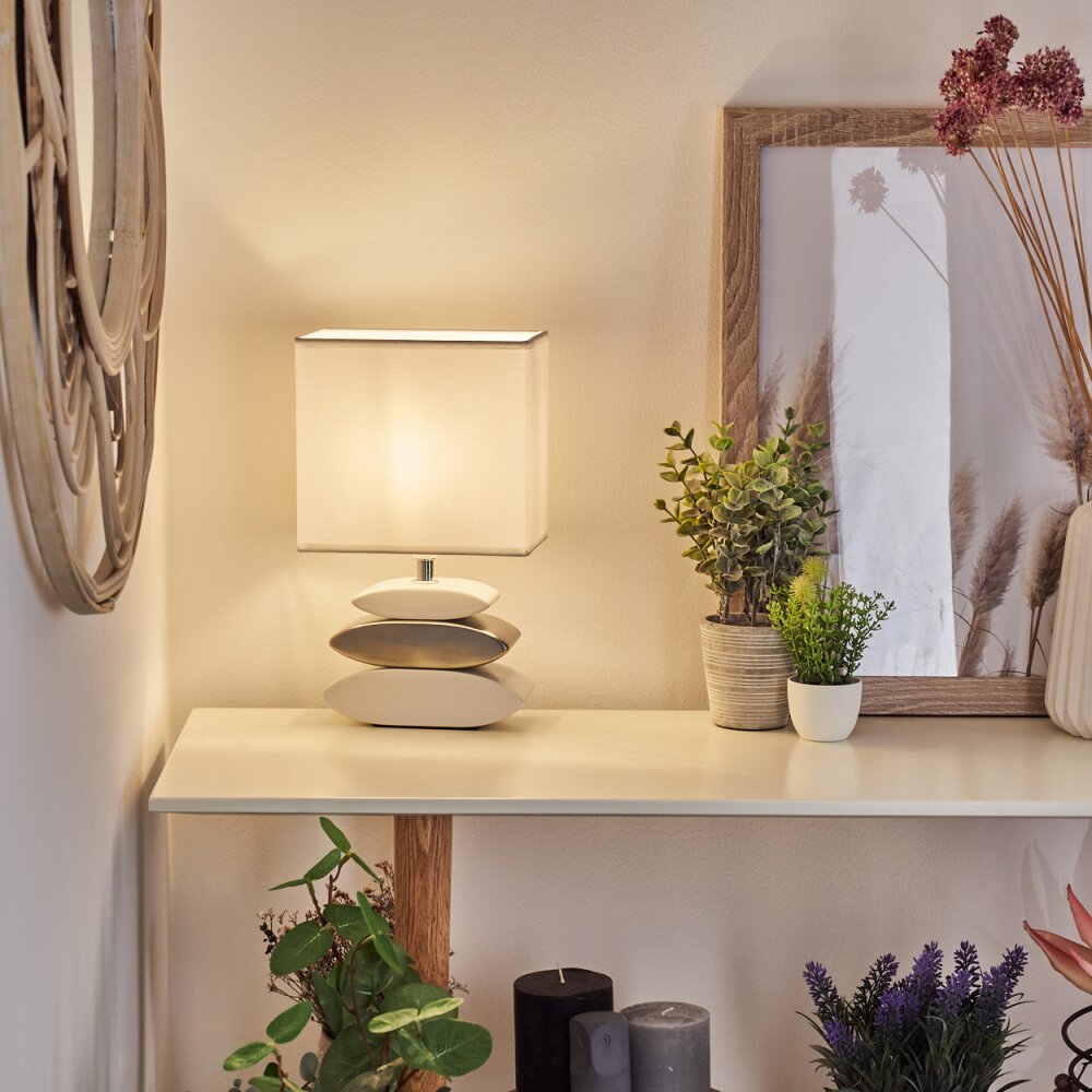 Lahnus Tafellamp Bruin, houtlook, Wit, 1-licht
