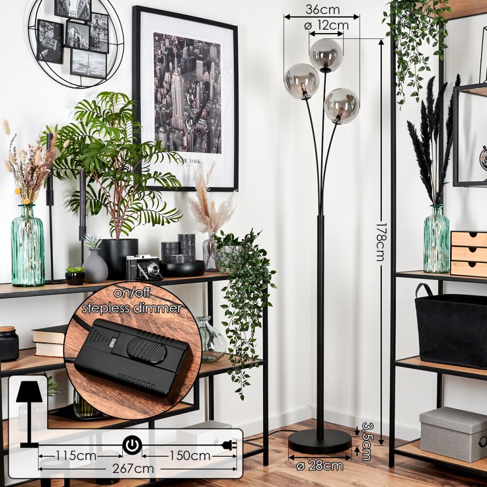 Bernado Staande lamp - Glas 15 cm Rookkleurig, 3-lichts