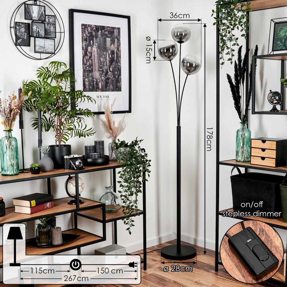 Bernado Staande lamp - Glas 15 cm Duidelijk, Rookkleurig, 3-lichts