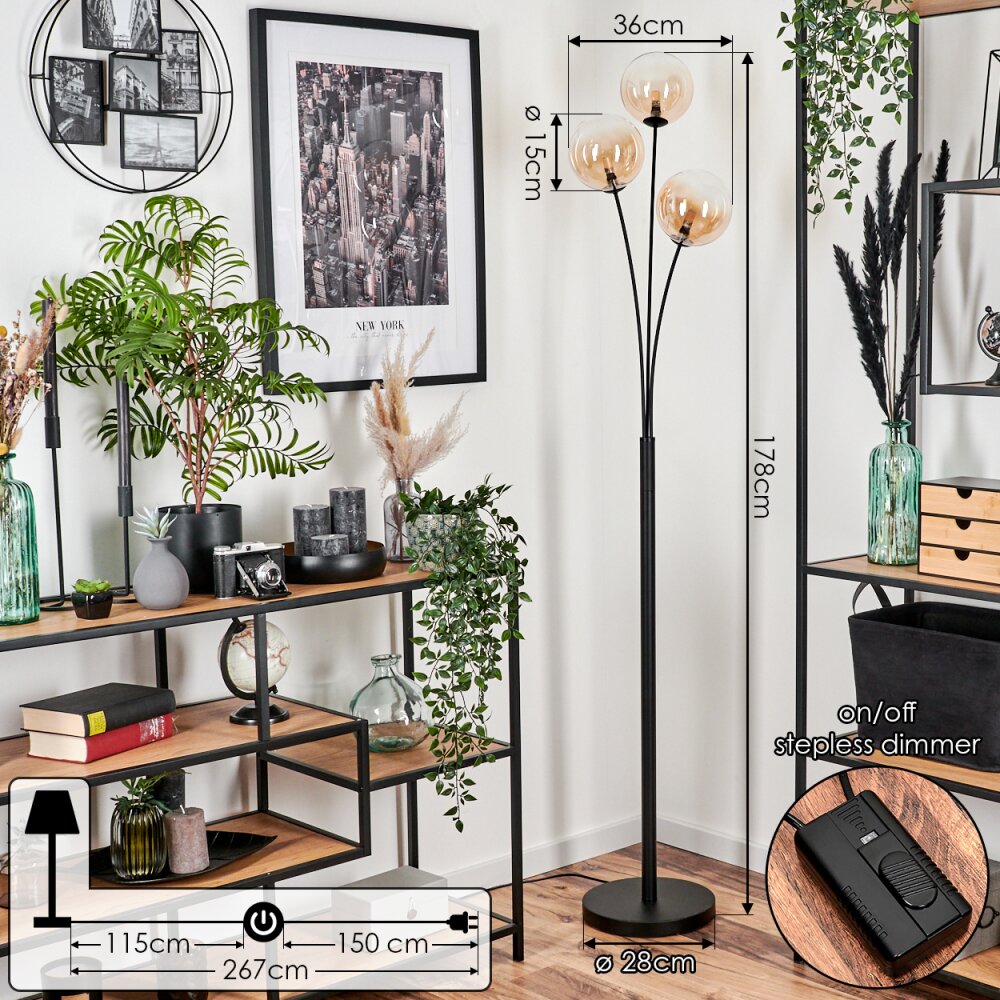 Bernado Staande lamp - Glas 15 cm Amber, Duidelijk, 3-lichts