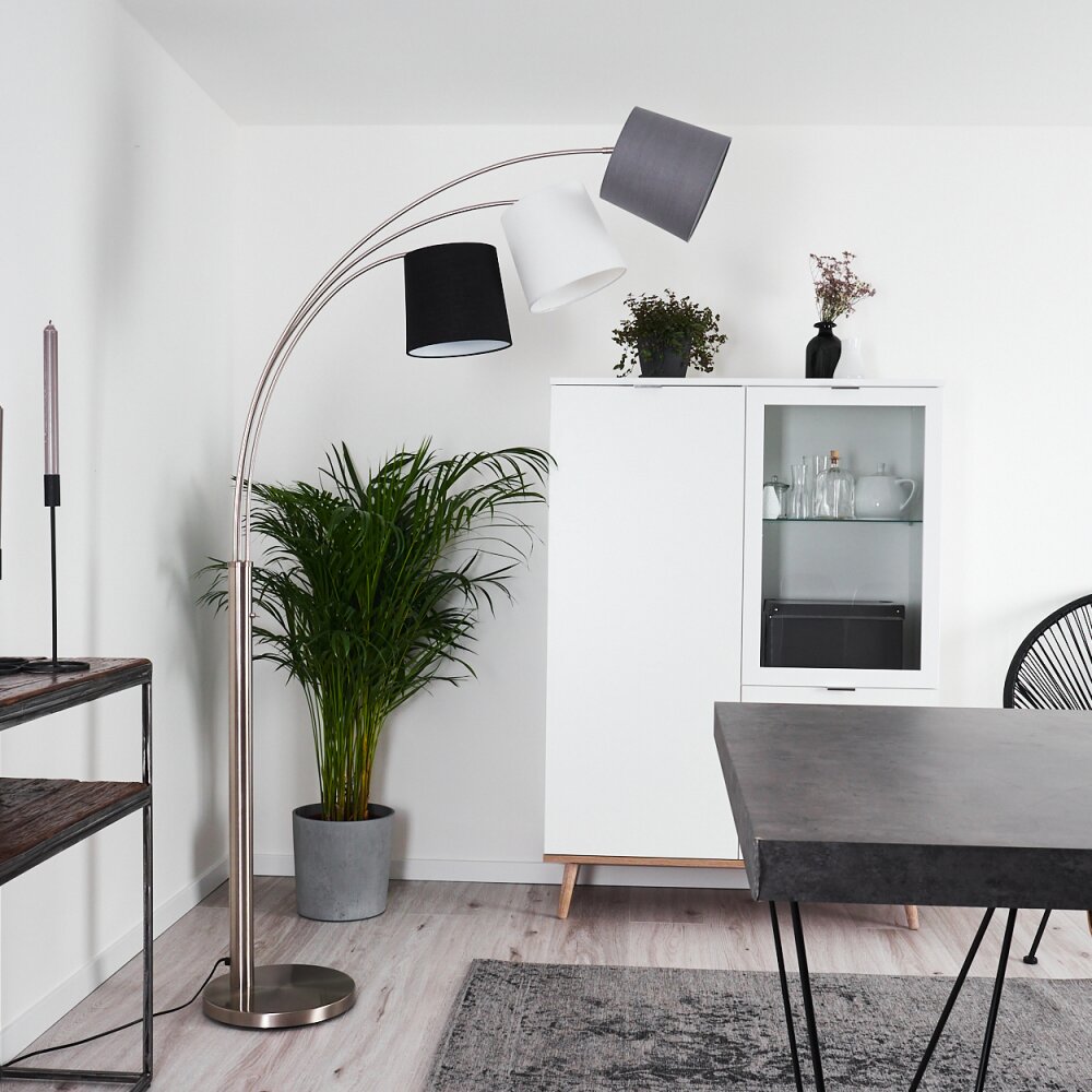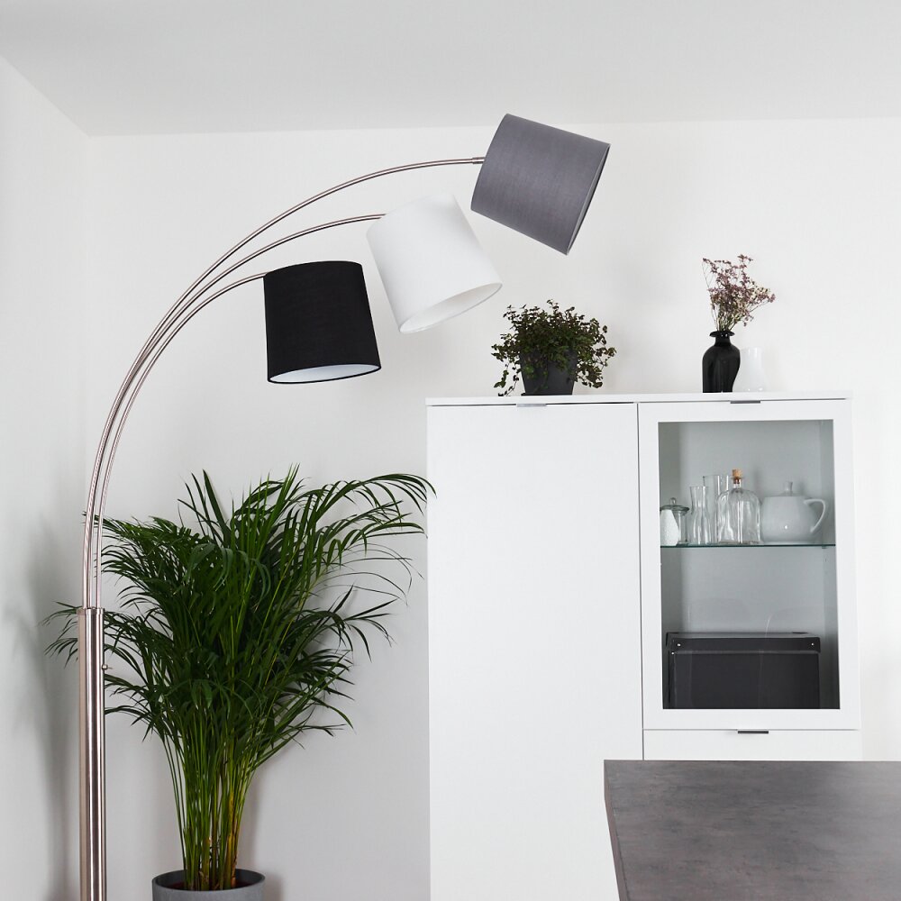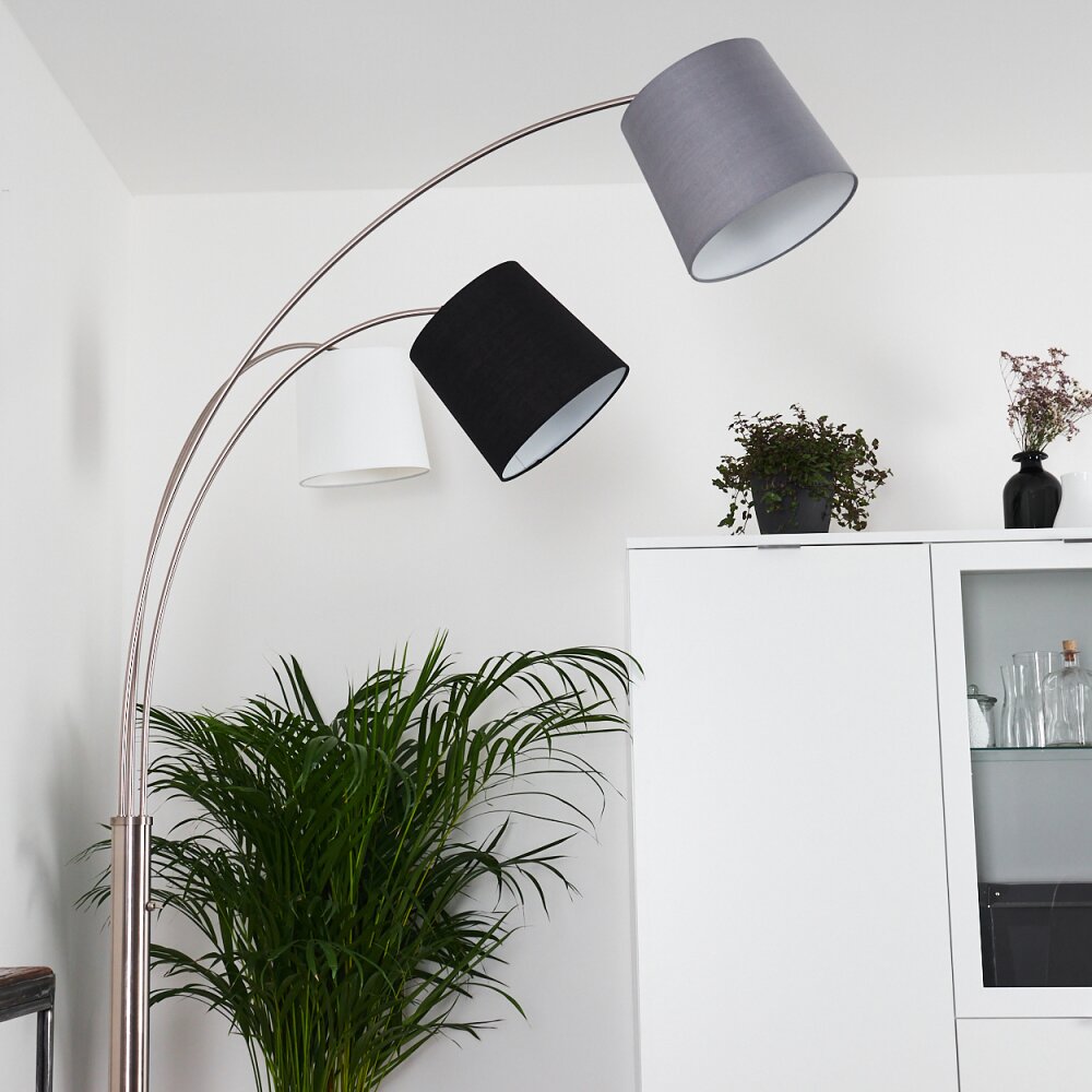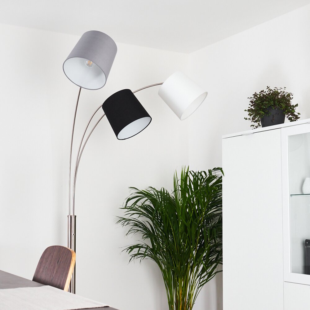 Bernardino Staande lamp Nikkel mat, 3-lichts, Stoffen lampenkap