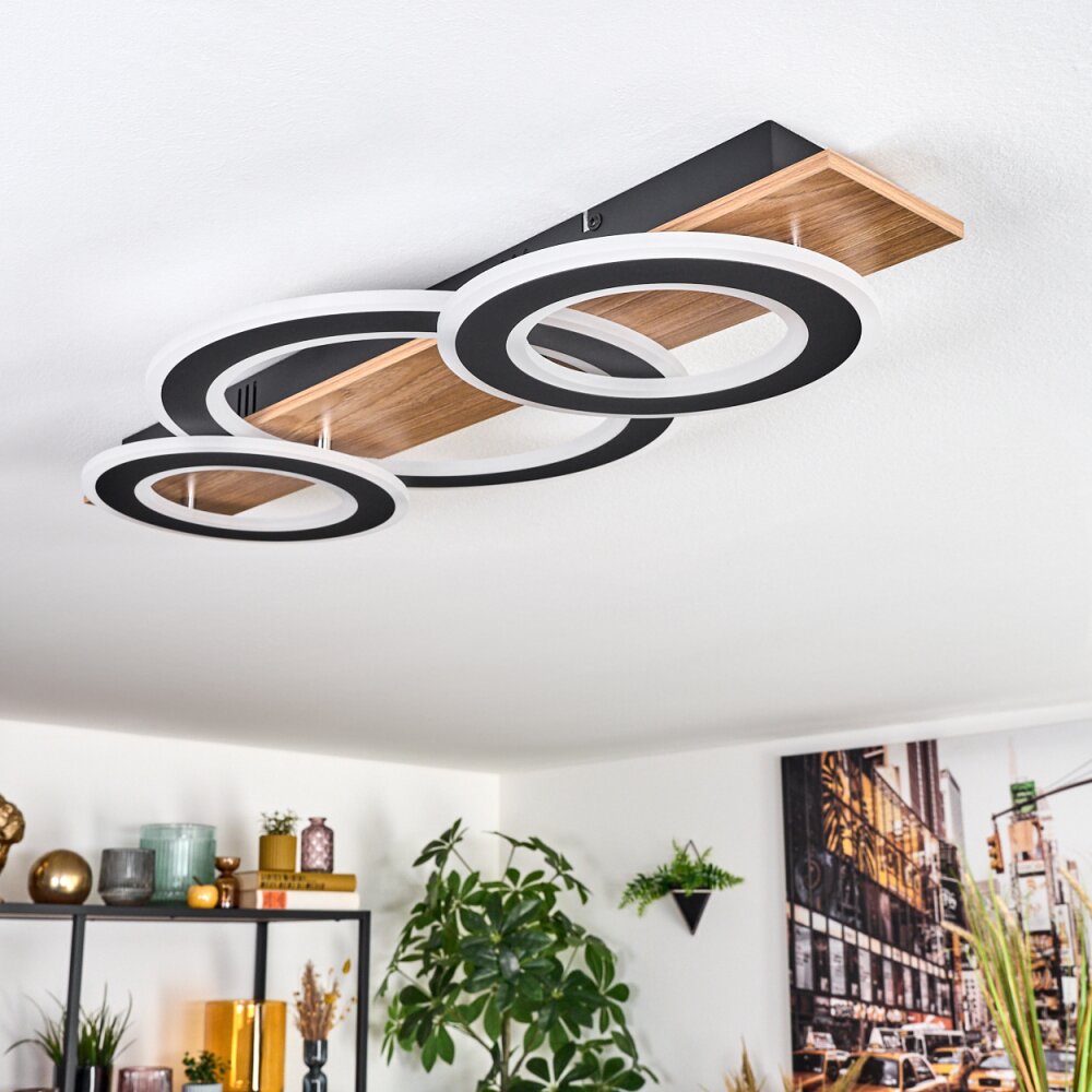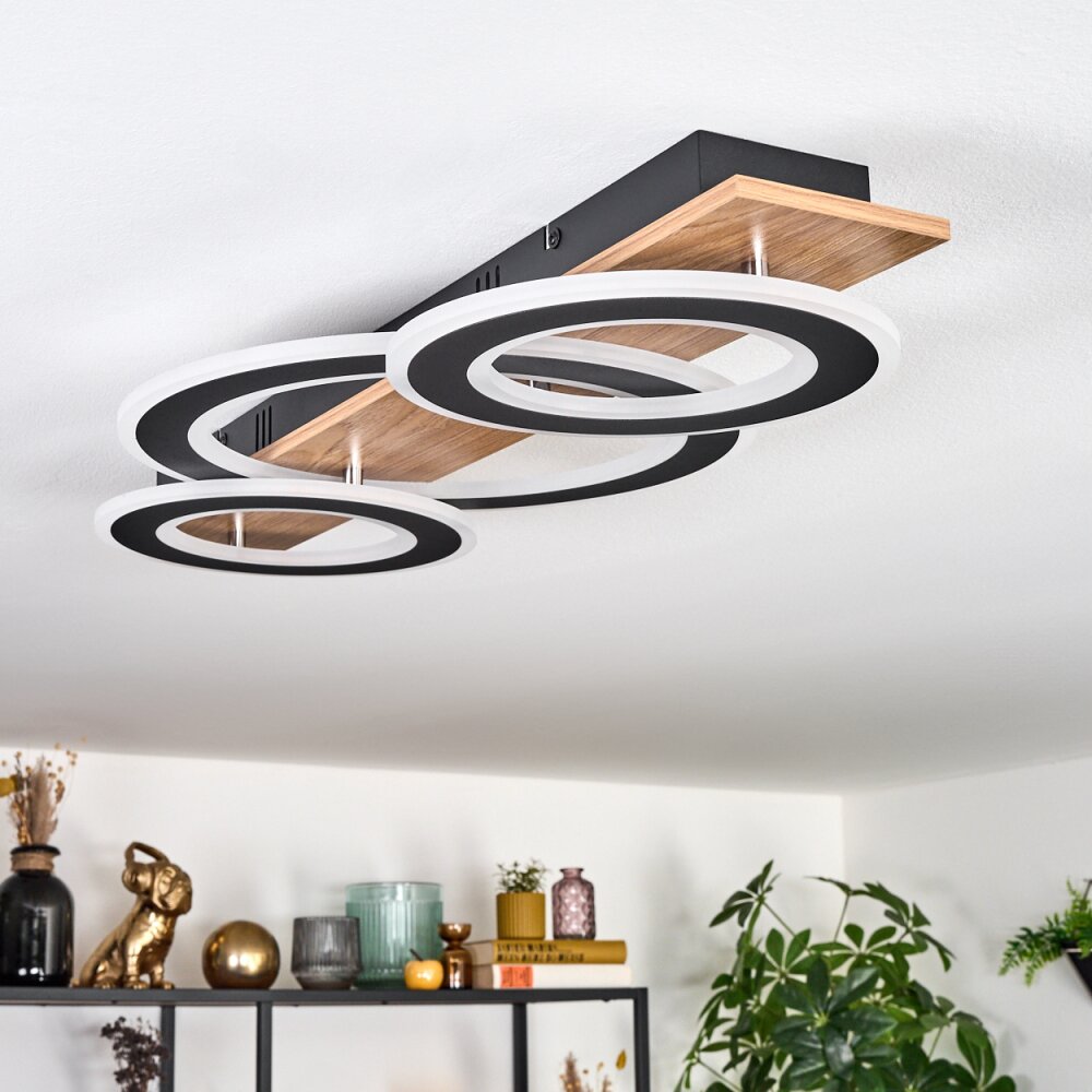 Besperia Plafondlamp LED houtlook, Zwart, 1-licht