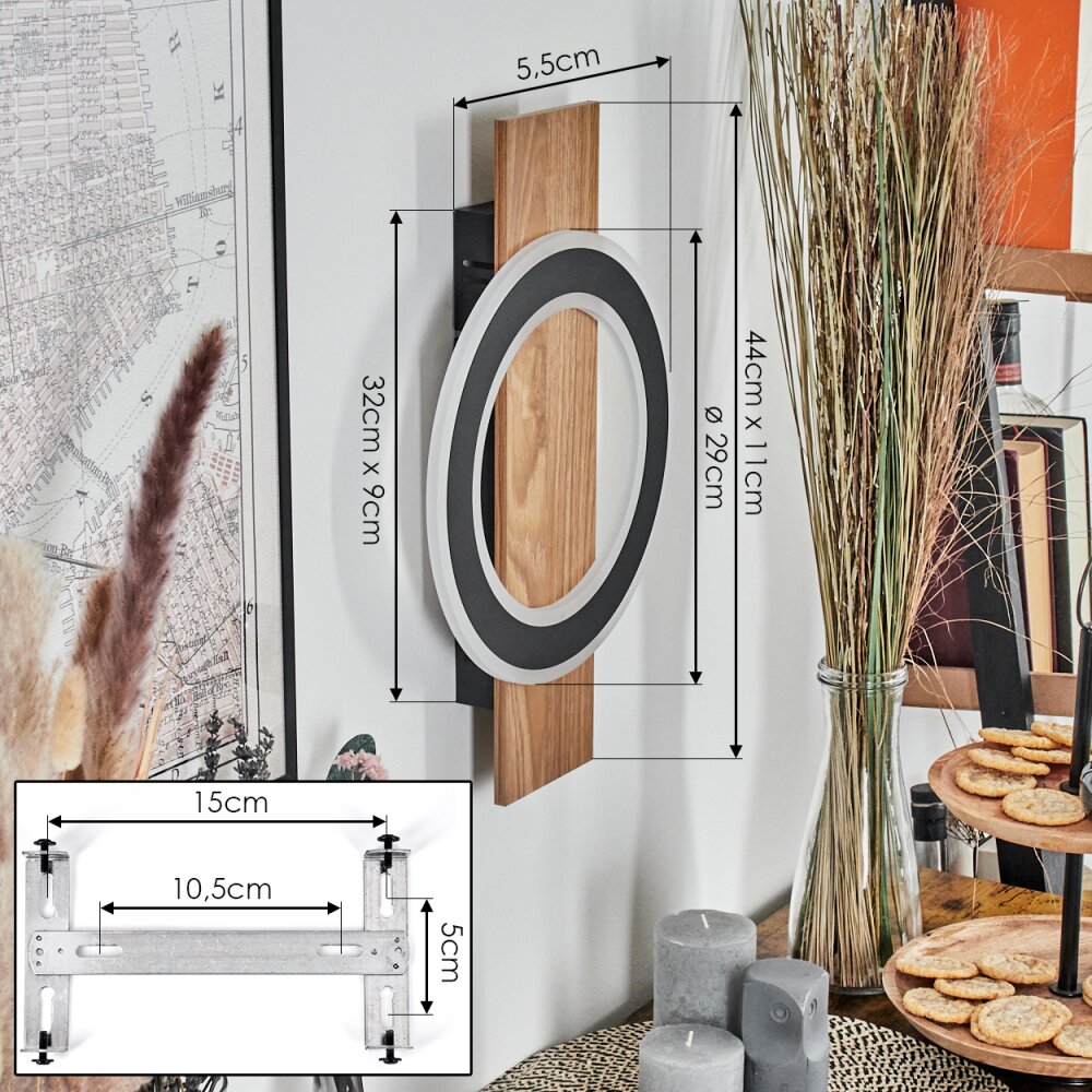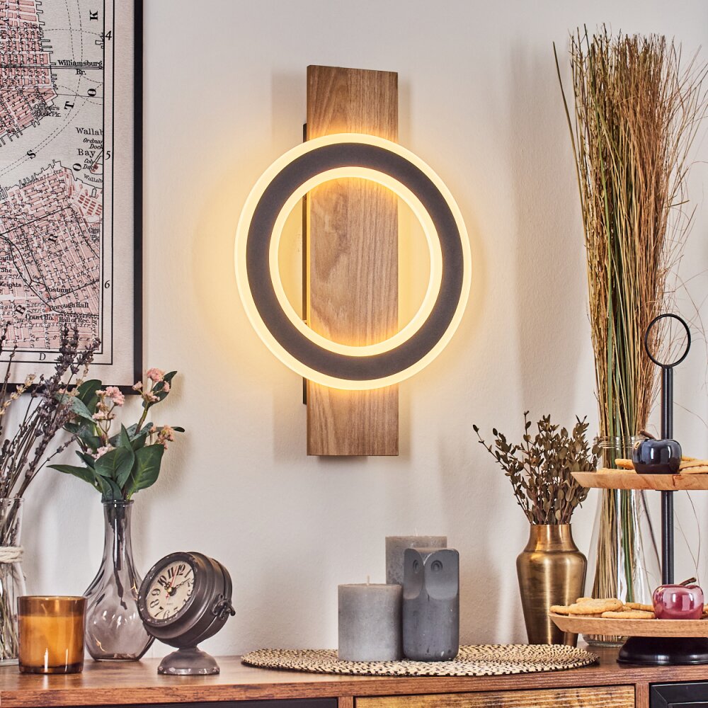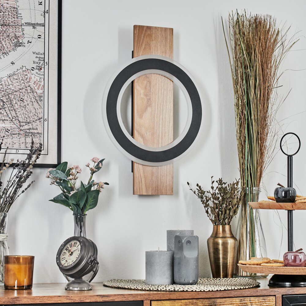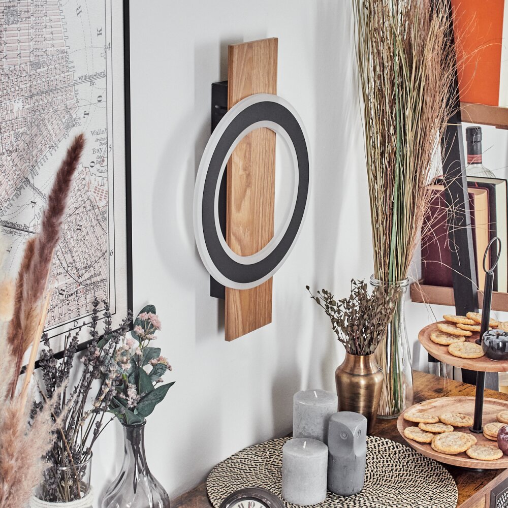 Besperia Wandlamp LED houtlook, Zwart, 1-licht