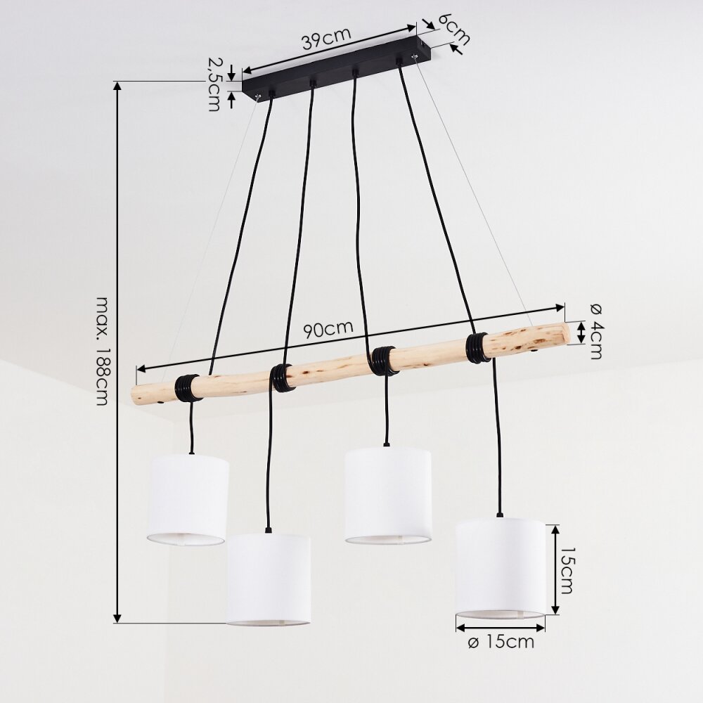 Betsele Hanglamp Hout licht, Zwart, 4-lichts