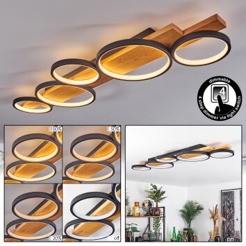 Cascada Plafondlamp LED Bruin, houtlook, Zwart, 1-licht