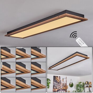 Salmi Plafondpaneel LED Bruin, houtlook, Zwart, 1-licht, Afstandsbediening